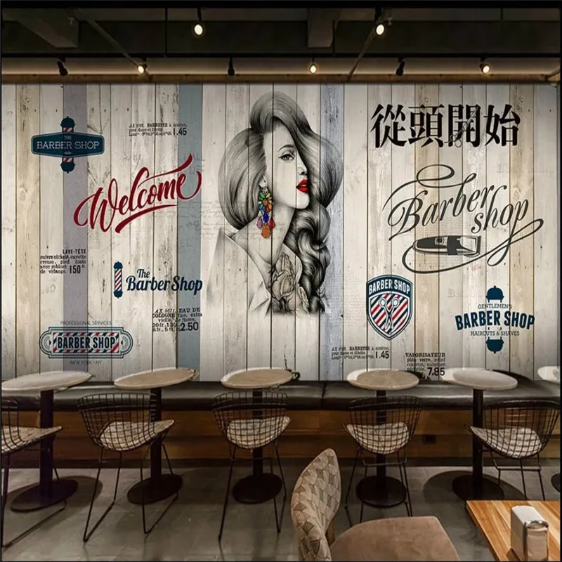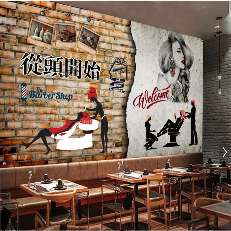 Настраиваемый парикмахерский салон красоты фон настенная бумага 3D Ретро Парикмахерская промышленный Декор настенная бумага 3D