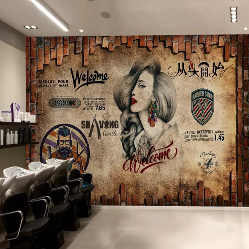 Пользовательский Европейский ретро парикмахерский настенный бумажны...