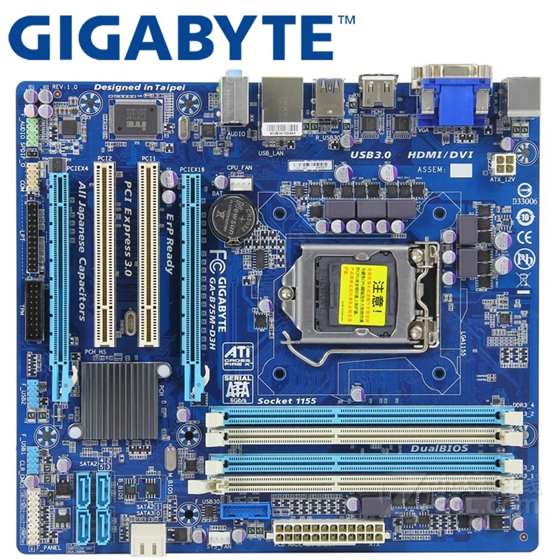 GIGABYTEGA-B75M-D3H настольная материнская плата B75 Socket LGA 1155 i3 i5 i7 DDR3 32G Micro ATX оригинальная B75M-D3H б/у материнская плата