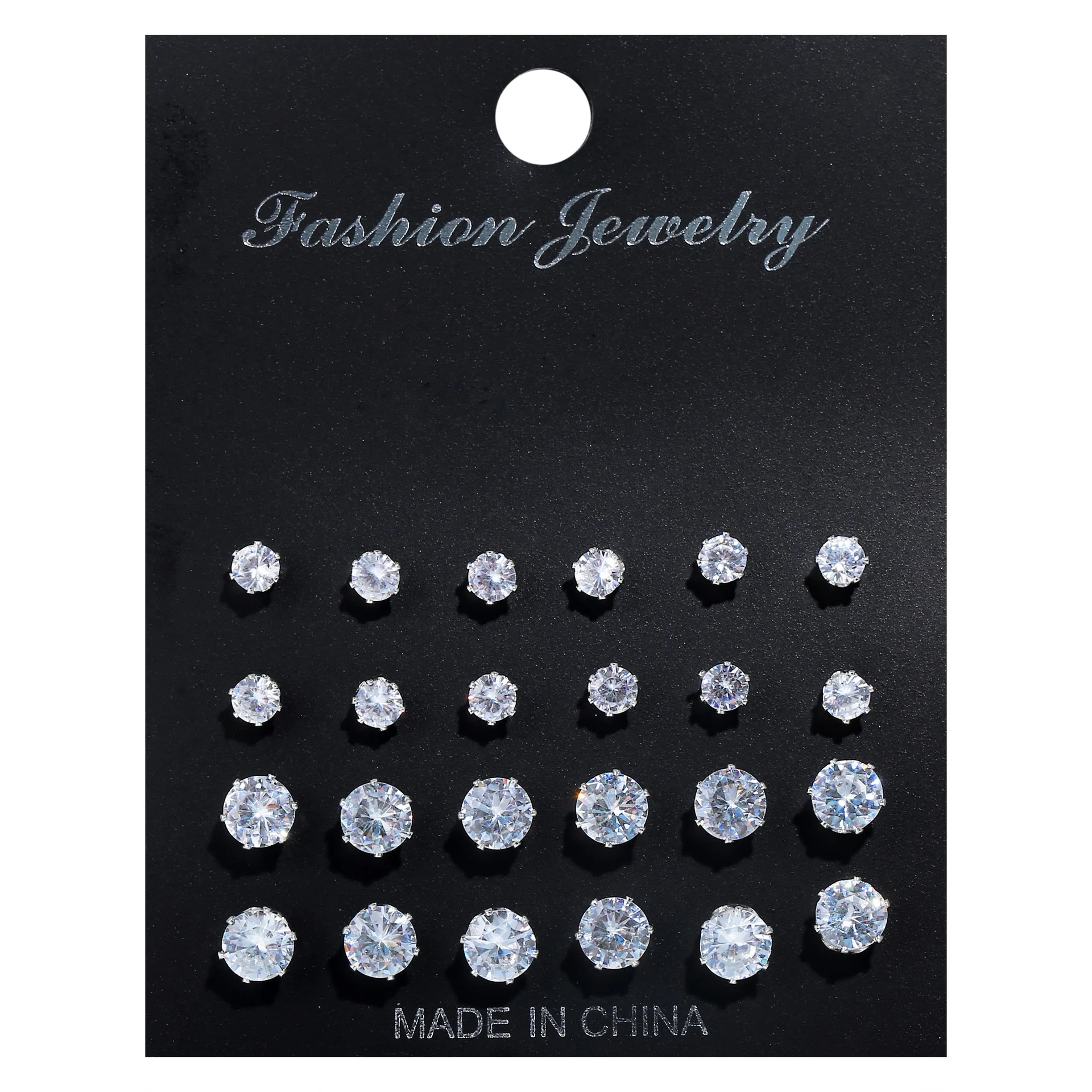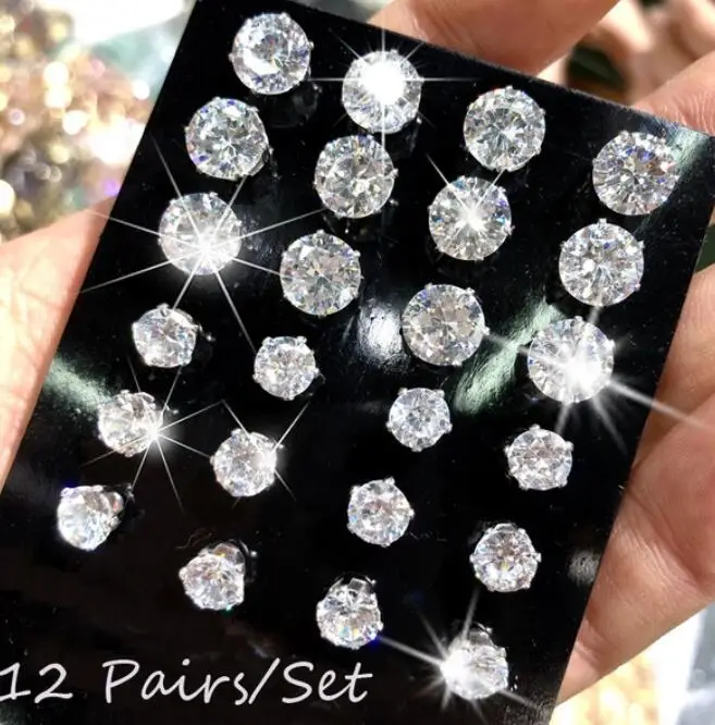 Женские серьги-гвоздики с фианитом, 12 цветов