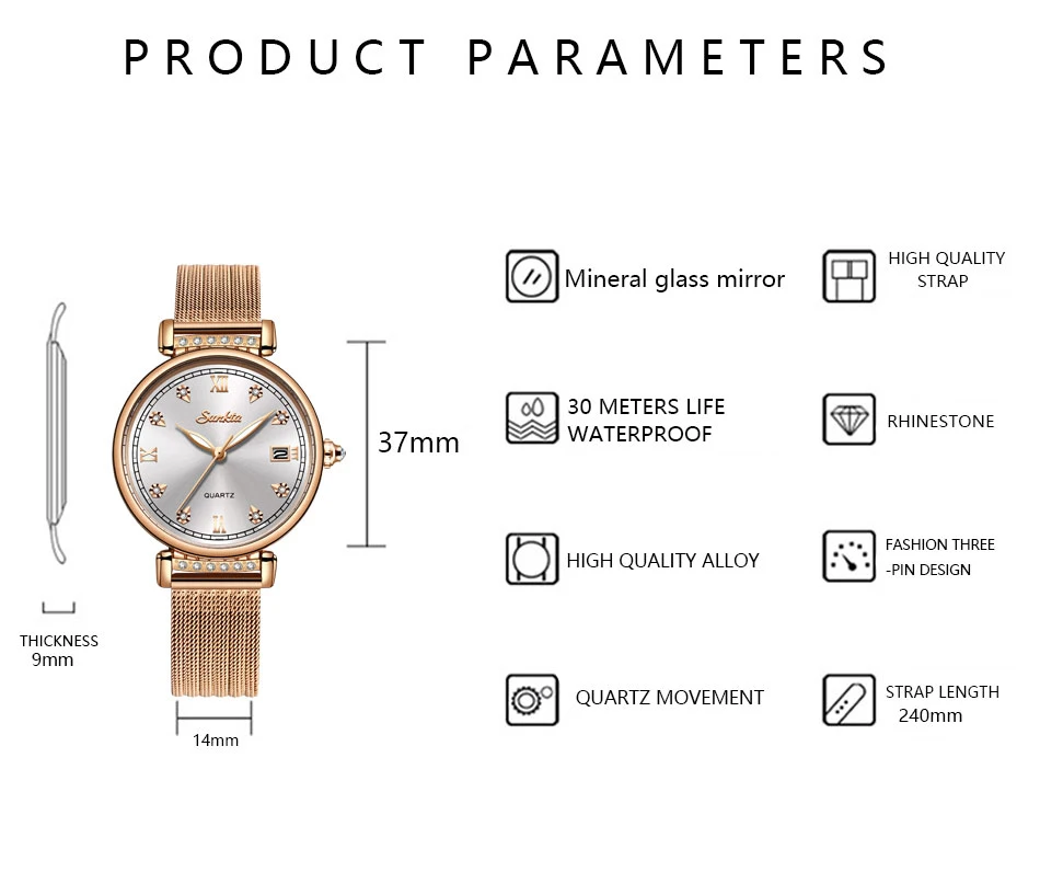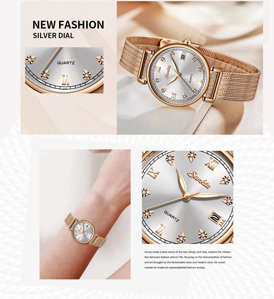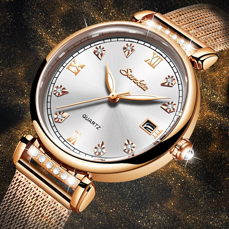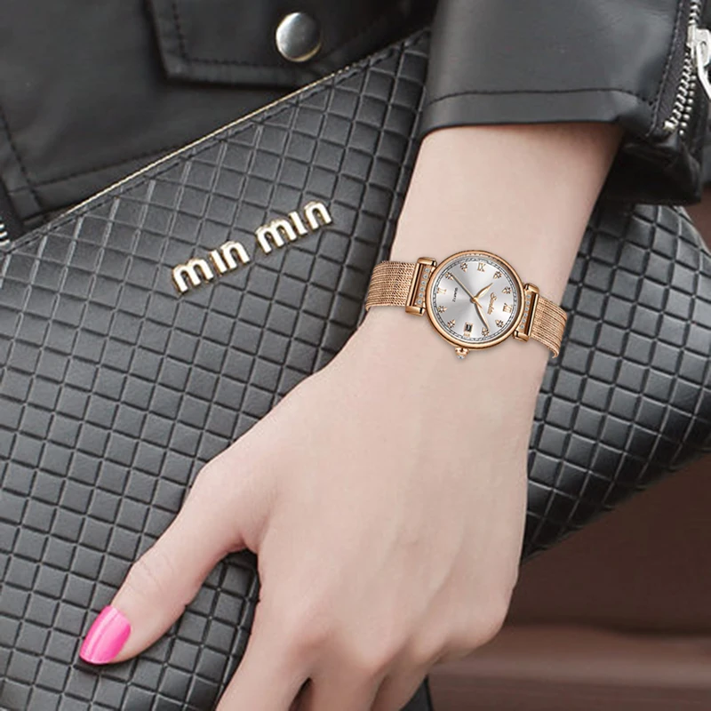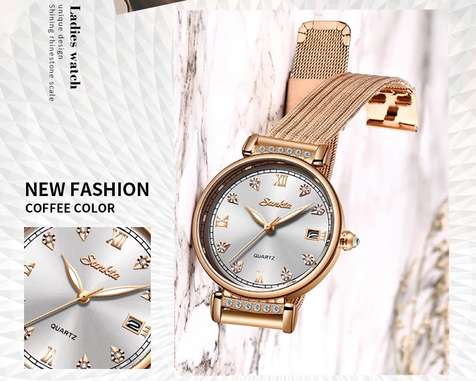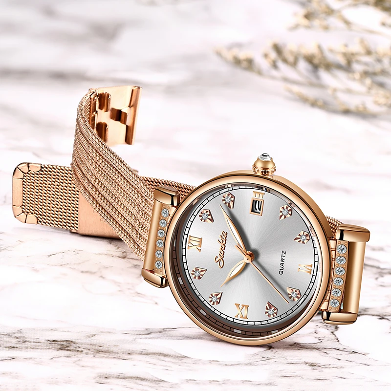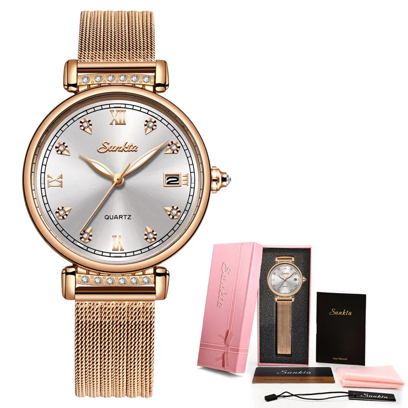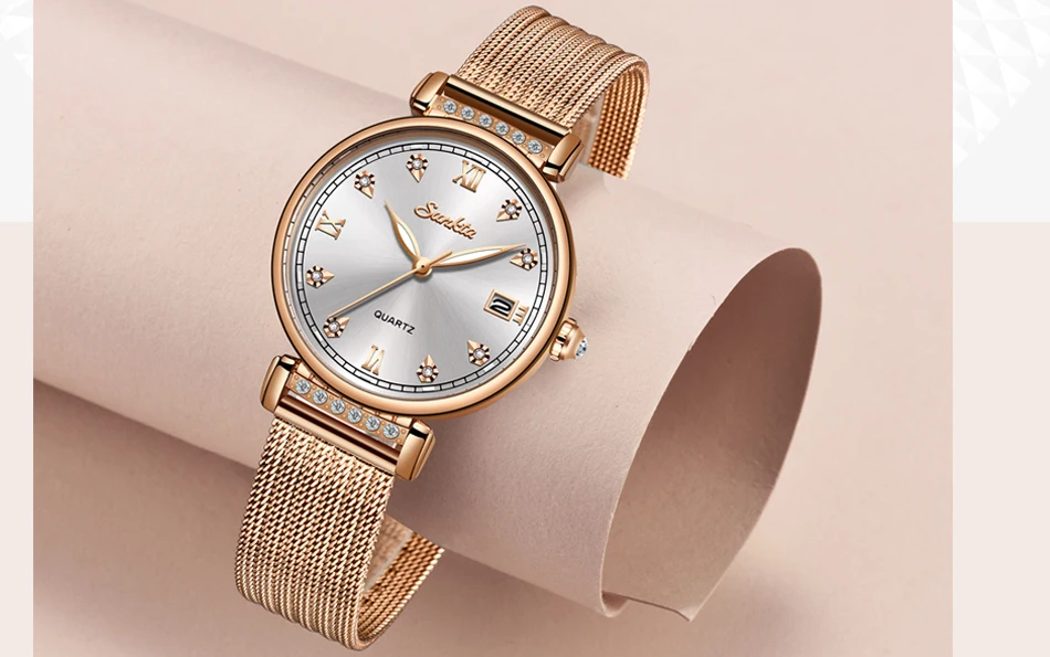 Часы женские кварцевые под розовое золото, в коробке, 2021 г.