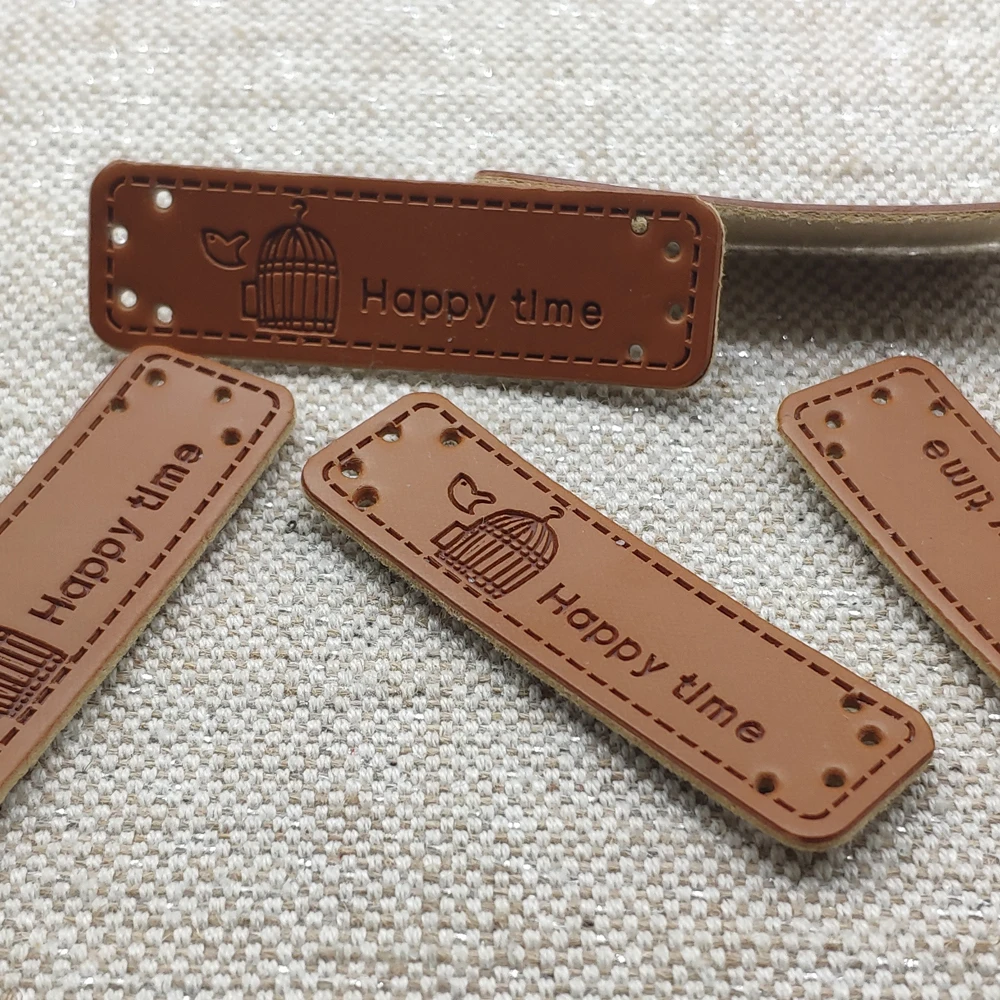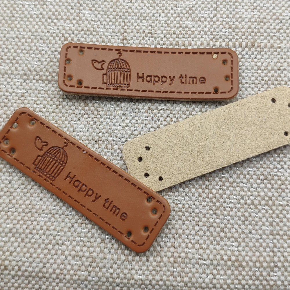 Этикетки ручной работы из искусственной кожи Free Bird для одежды, логотип счастливого времени для шитья, бирки ручной работы для одежды, Подарочные кожаные этикетки ручной работы