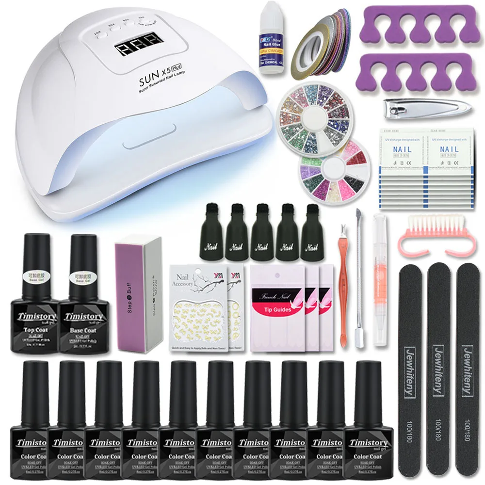 Набор для ногтей с лампой для ногтей 80Вт Набор лаков для ногтей маникюрный набор для инструментов для ногтей набор пилок для ногтей верхнее покрытие Базовое покрытие Гель-лак