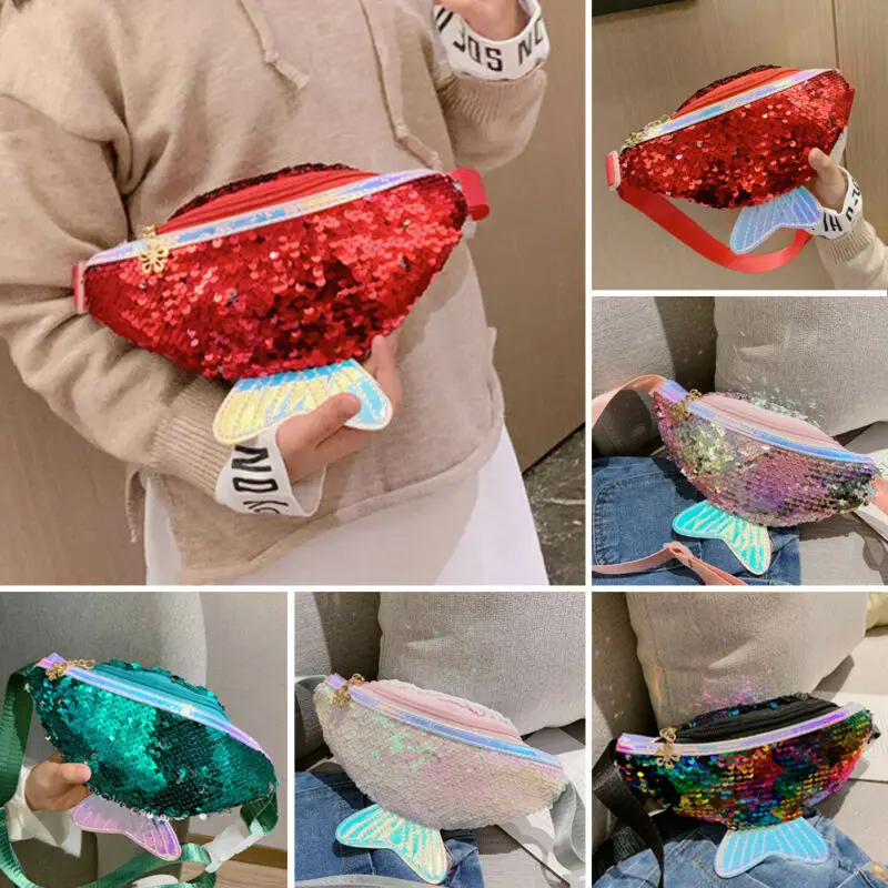Модная детская поясная сумка с блестками для девочек, нагрудная сум...