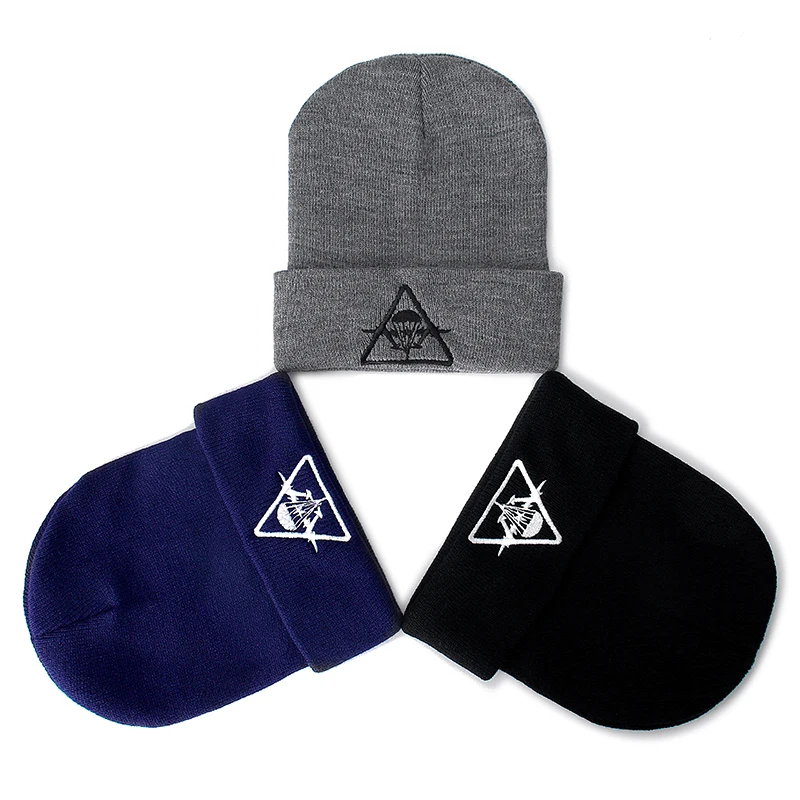 1 шт шапка ВДВ вышивка повседневное шапка женская мужская теплая вязаная зимняя шапка модные Сплошной цвет шапка