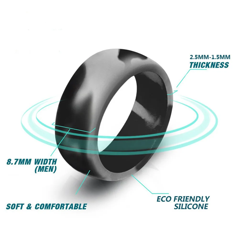 10 шт.лот пищевое качество FDA Силиконовое кольцо гипоаллергенные Crossfit гибкие камуфляжные резиновые перстни для мужчин 8,7 мм 7-14 Силиконовое кольцо