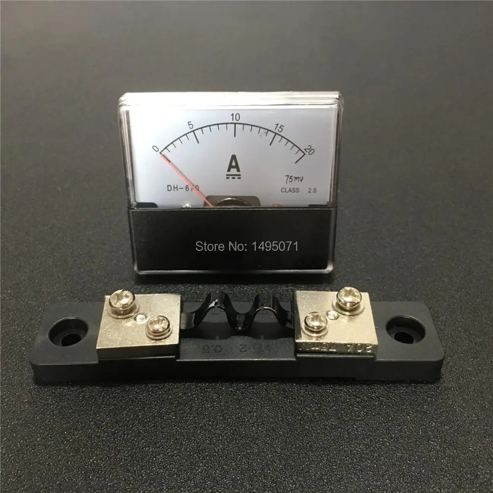 Панельный измеритель DH670 аналоговая Amp, постоянный ток 0-20 А, амперметр механический указатель калибра 20 А Вт, внешний шунтирующий резистор 75 мВ FL-2 0,5, 1 шт.