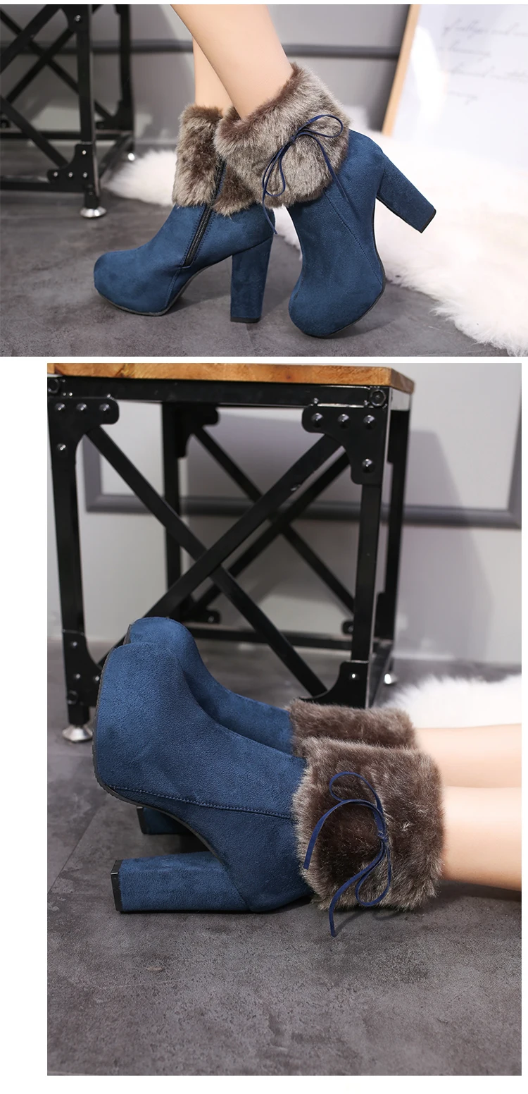 Зимние Замшевые ботильоны на платформе; Для женщин; Модные туфли с ...