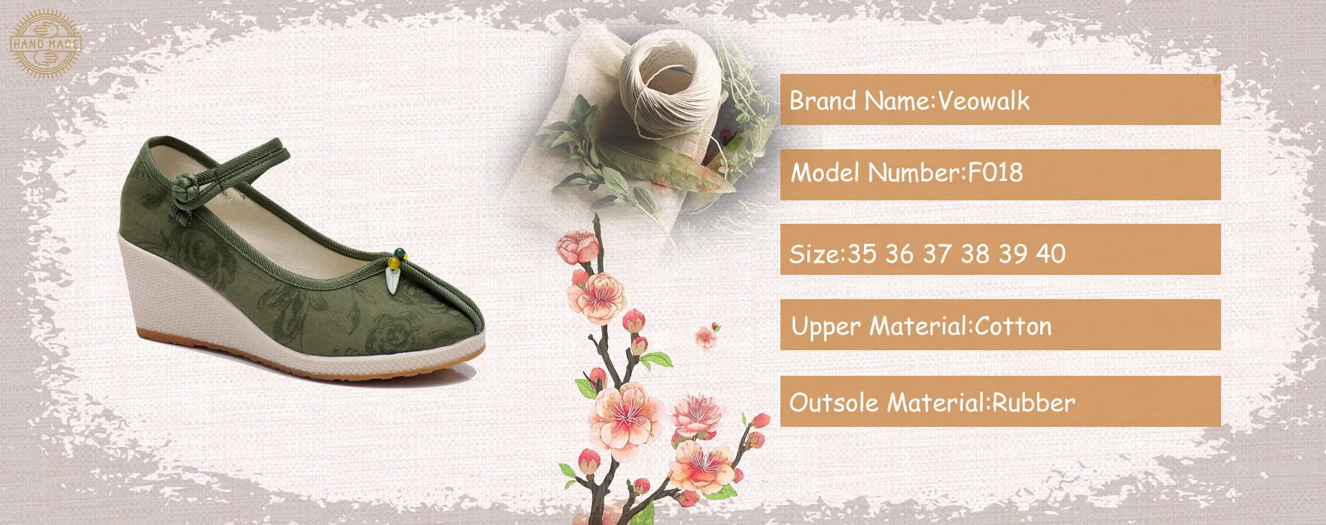 ● Китайская традиционная вышивка● Удобный мягкий дышащий холст● Идеальный подарок для мамы● Клиновидная платформа 7 см