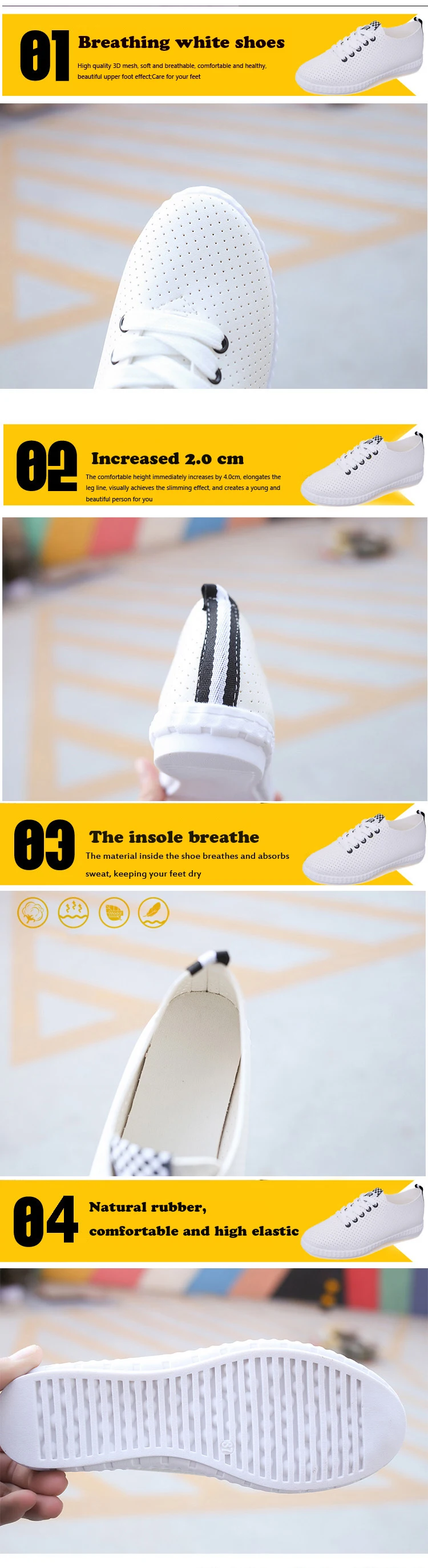 Женские дышащие кроссовки на платформе, Белые Повседневные кроссовк...