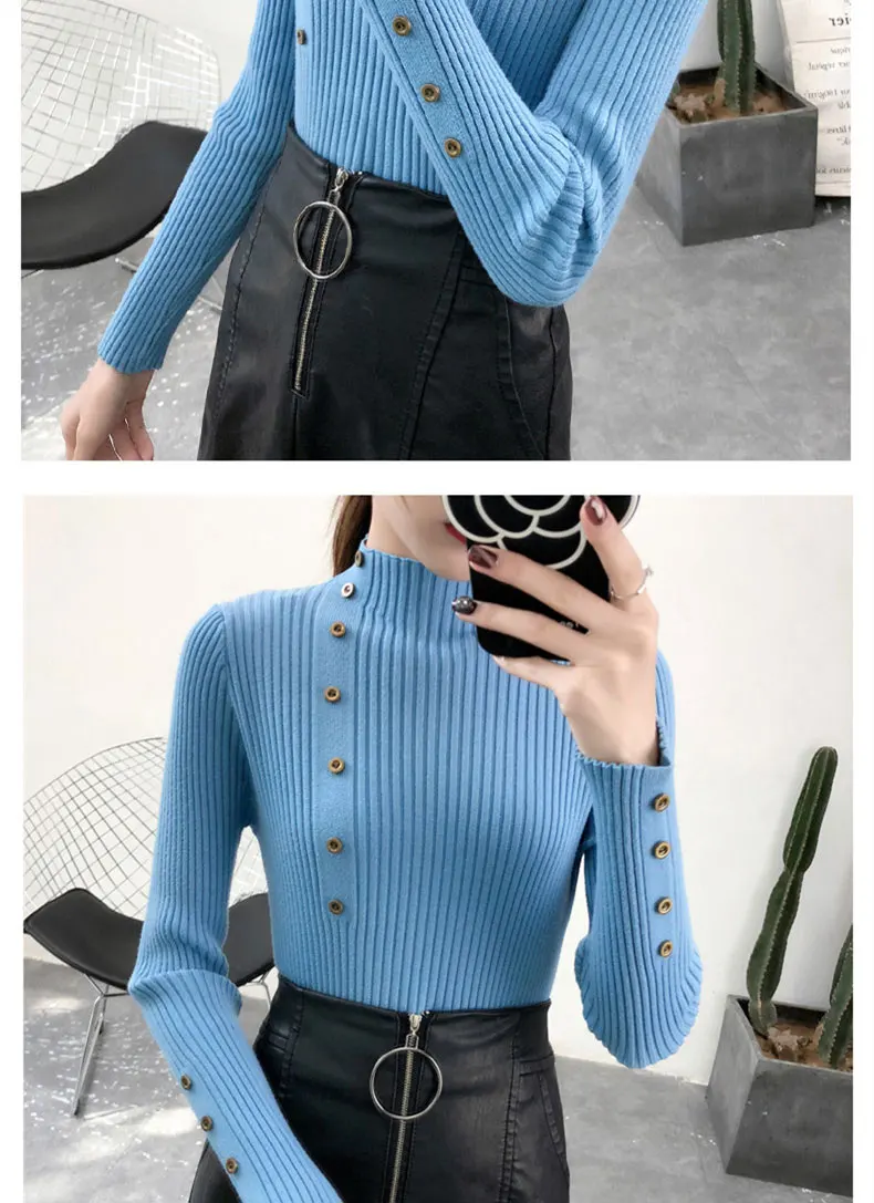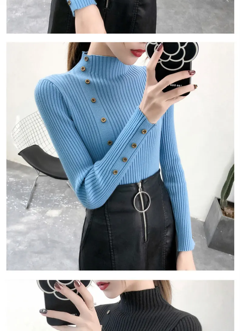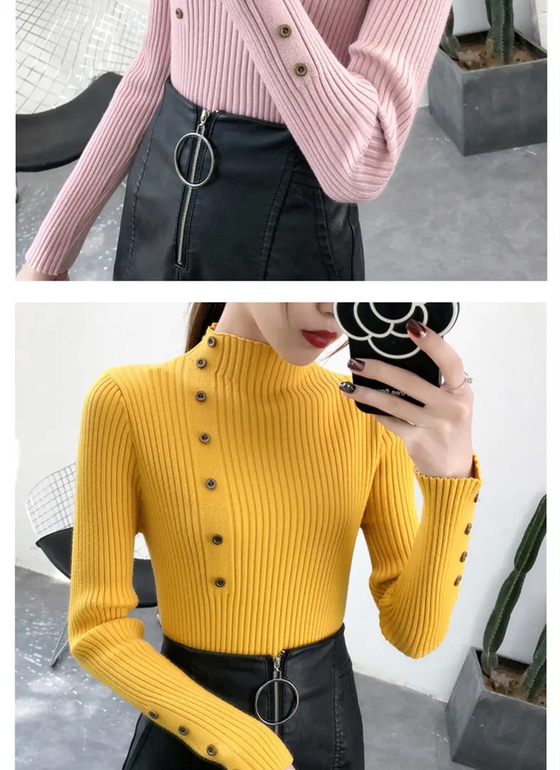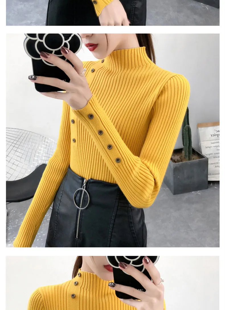 2020, Женский Осенний трикотажный облегающий свитер, однотонный трикотажный женский хлопковый мягкий эластичный цвет, водолазка с длинными рукавами, пуловеры с кнопками