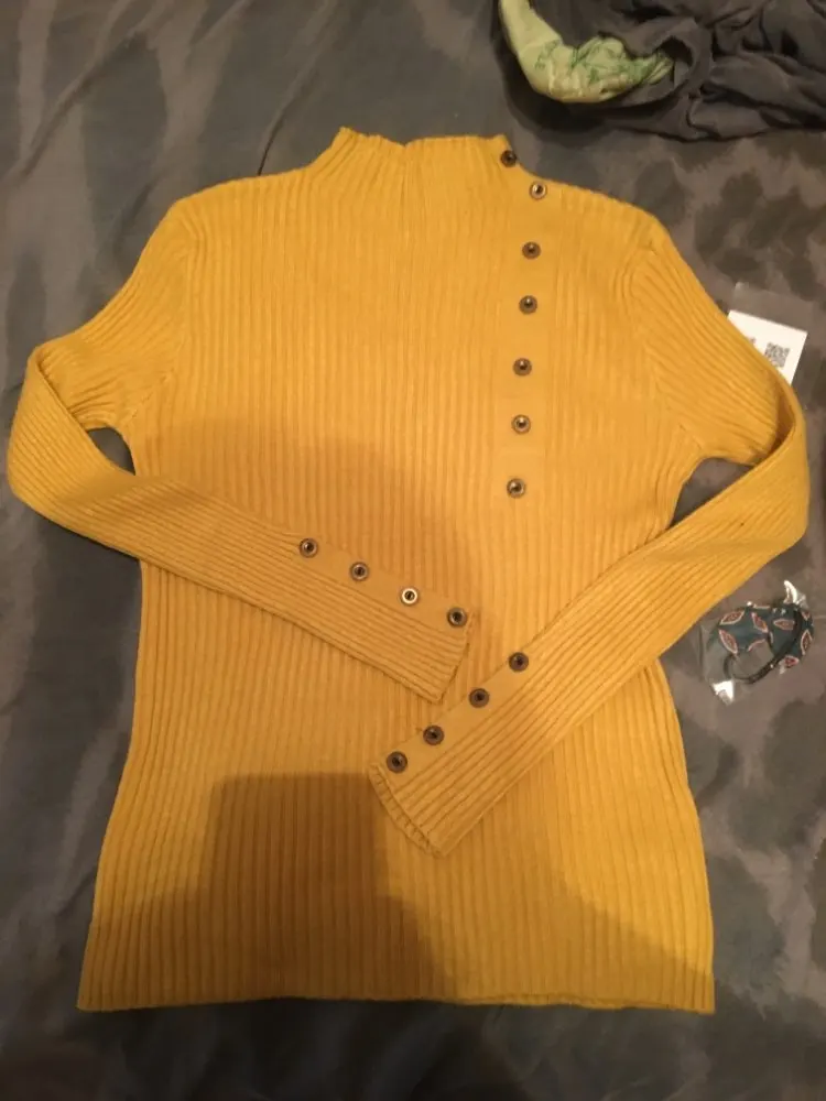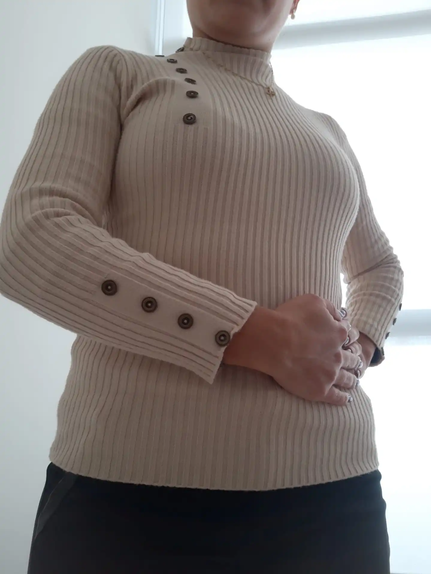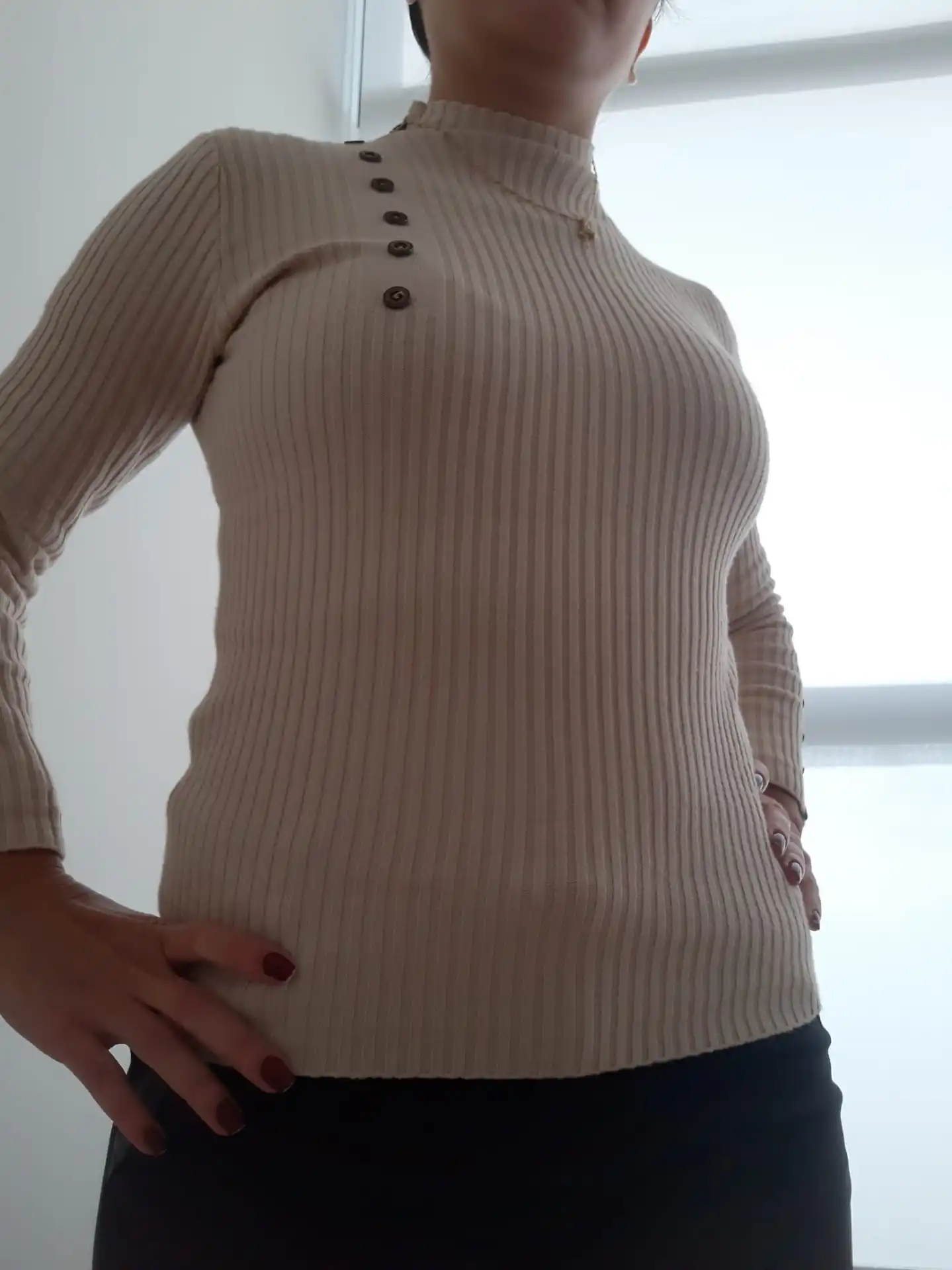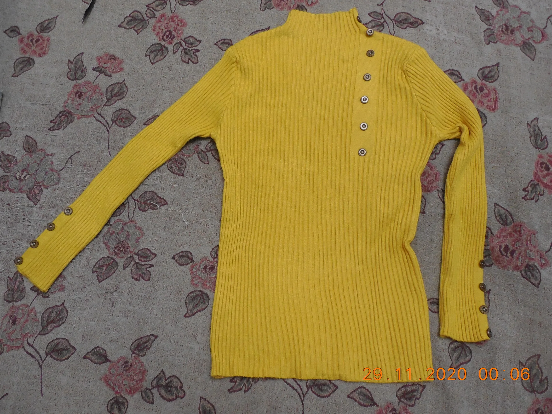 Посылка в Украину пришла очень быстро, шла дней 17 Пришла вололазка в очень аккуратном виде, не мятая. Очень красивый горчично желтый цвет, мягенькая, швы ровные. Но к великому сожалению оказалась мала. Я ношу размер 46-48 российский, ОГ - 98 см. Покупала водолазку ссылаясь на таблицу Таблица размеров Длина: 52 см Обхват груди: 70-120 см Длина рукава: Рукав через плечо: 57 см а также на отзывы покупателей, что характерно, что на фотографиях были девочки и пышнее меня) и все писали, что вололазка как раз, но в моем случае она мне мала, очень жмет в пройме рукава, рукав короткий, в ней не комфортно ну никак. Получилась совсем бесполезная покупка. Я полагаю что эта водолазка будет хорошо сидеть на девочке с размером 42-44 не больше. Звезды не снимаю, спор не открываю, сама виновата, можно было и предвидеть это. Но продавец очень хороший, внимательный, качество водолазки хорошее, так что ставлю 5 звезд.