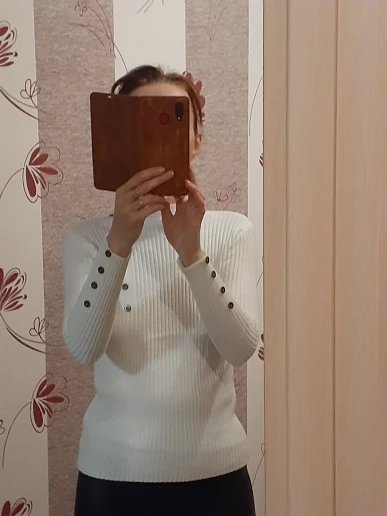 Хорошая водолазка. Плотный материал,хорошая длина. Декор на месте. Однозначно рекомендую.