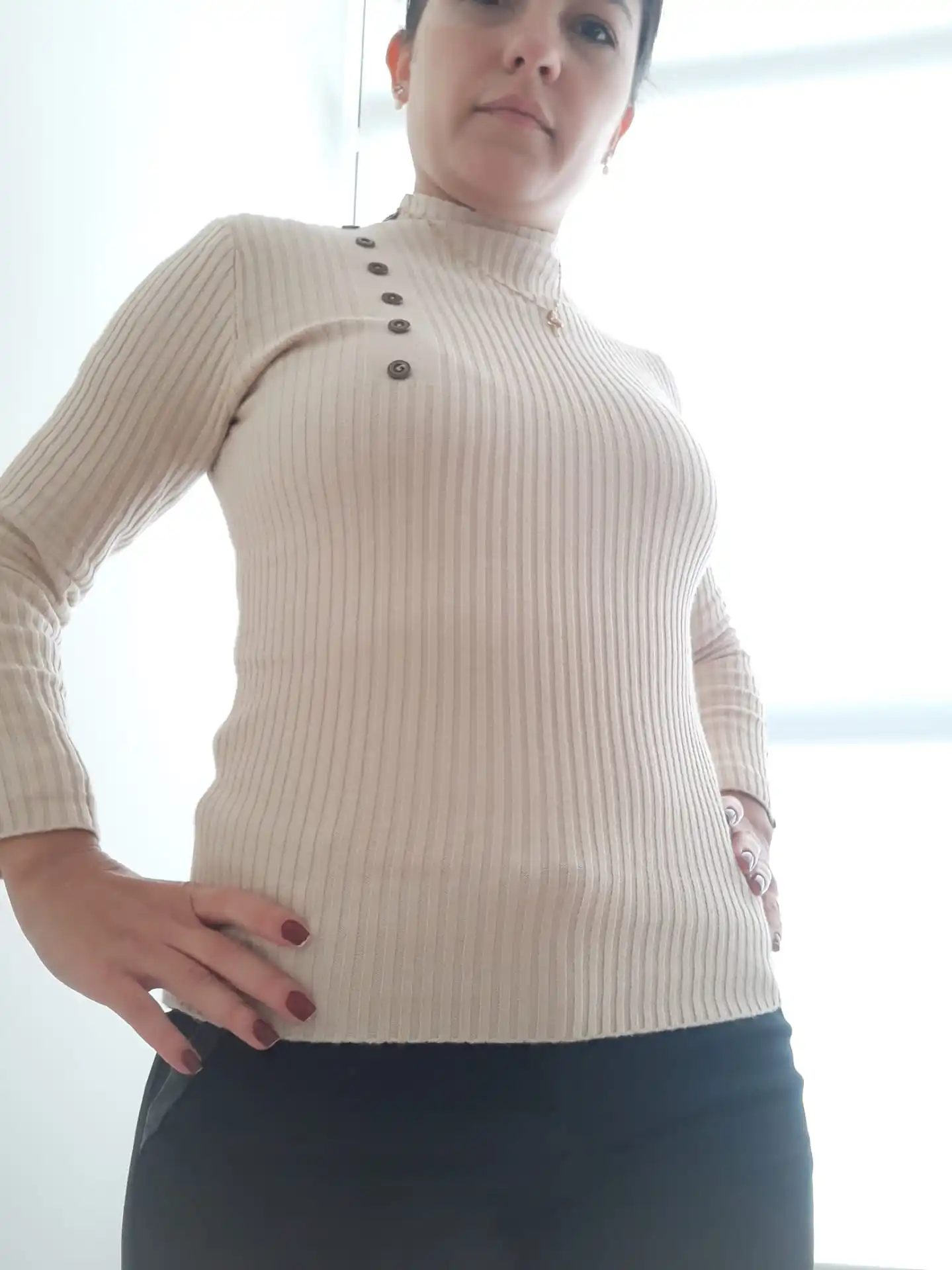 доброго времени суток! Кофточка меня приятно удивила, на ощупь мягкая. Кофта не узкая, рукава правда 3/4 , но мне нравится такой вариант, в работе не мешают. Думаю, хорошо будет смотреться в основном на стройных девушка, максимум 44-46 размер. Обязательно закажу в другом цвете! Хорошо смотрится с юбкой, в основном их ношу. К заказу рекомендую!