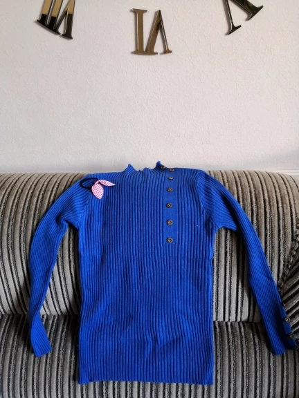 26.09 заказала - 9.10 пришло на Ставрополье, очень быстро. Свитерок простой, повседневный, очень мягкий, приятный и тёплый, не колется. Воспользовалпсь купоном и он обошелся мне в 426 р. Хорошо сел на ширину плеч 37 см, ОГ 86. Рукава хотелось бы чуть-чуть подлиннее. Цвет темнее, чем на фото продавца, но мне очень понравился - красивый, сочный, насыщенный синий - практически такой же, как на моем фото. Продавец положил резинку для волос, что очень приятно). Рекомендую магазин и продавца. Спасибо!