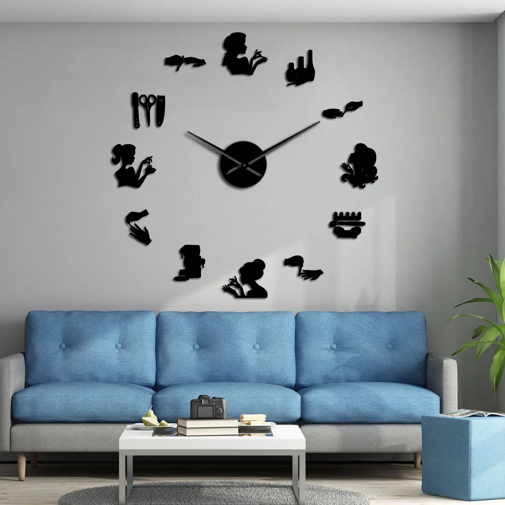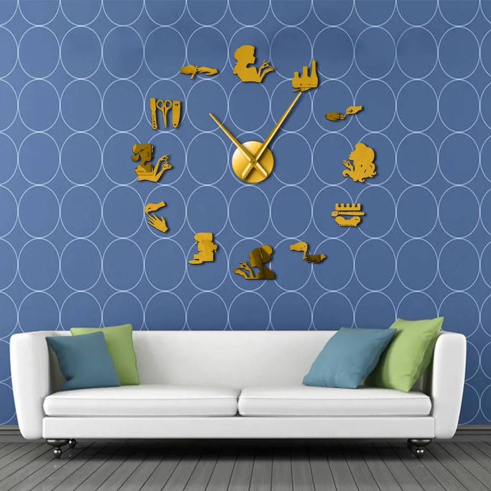 Зеркальные акриловые настенные часы сделай сам для нанесения лака и макияжа, гигантские настенные часы для салона красоты, декоративные бескаркасные настенные часы
