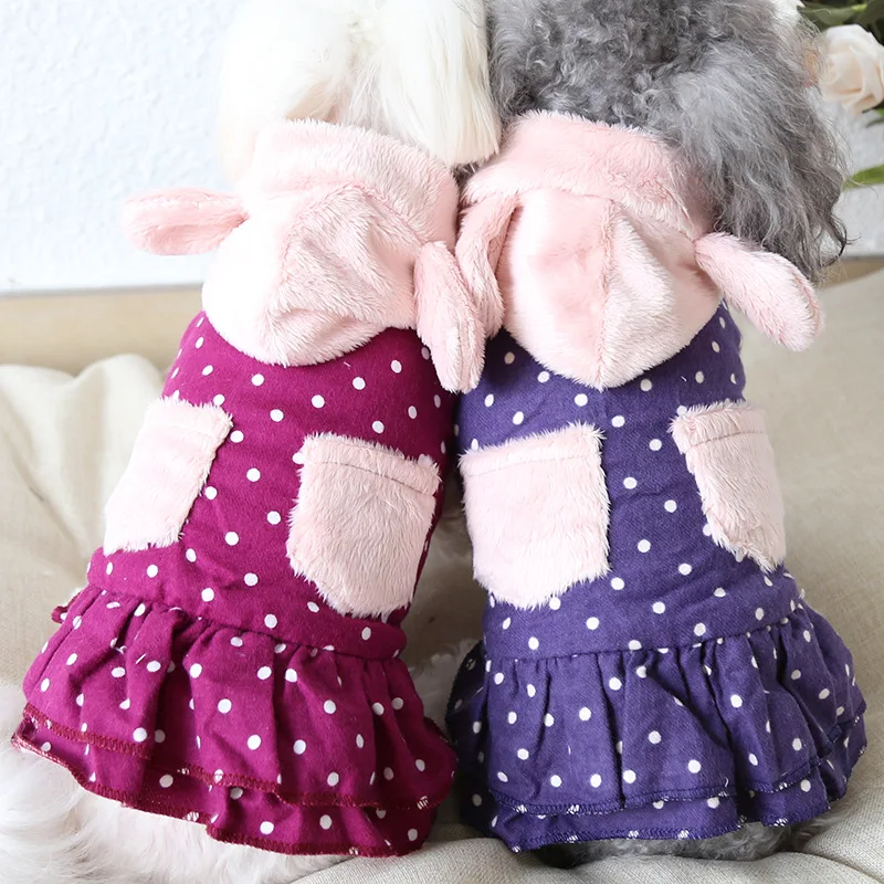 Хлопковые теплые платья для собак, розового цвета, Осень-зима, това...