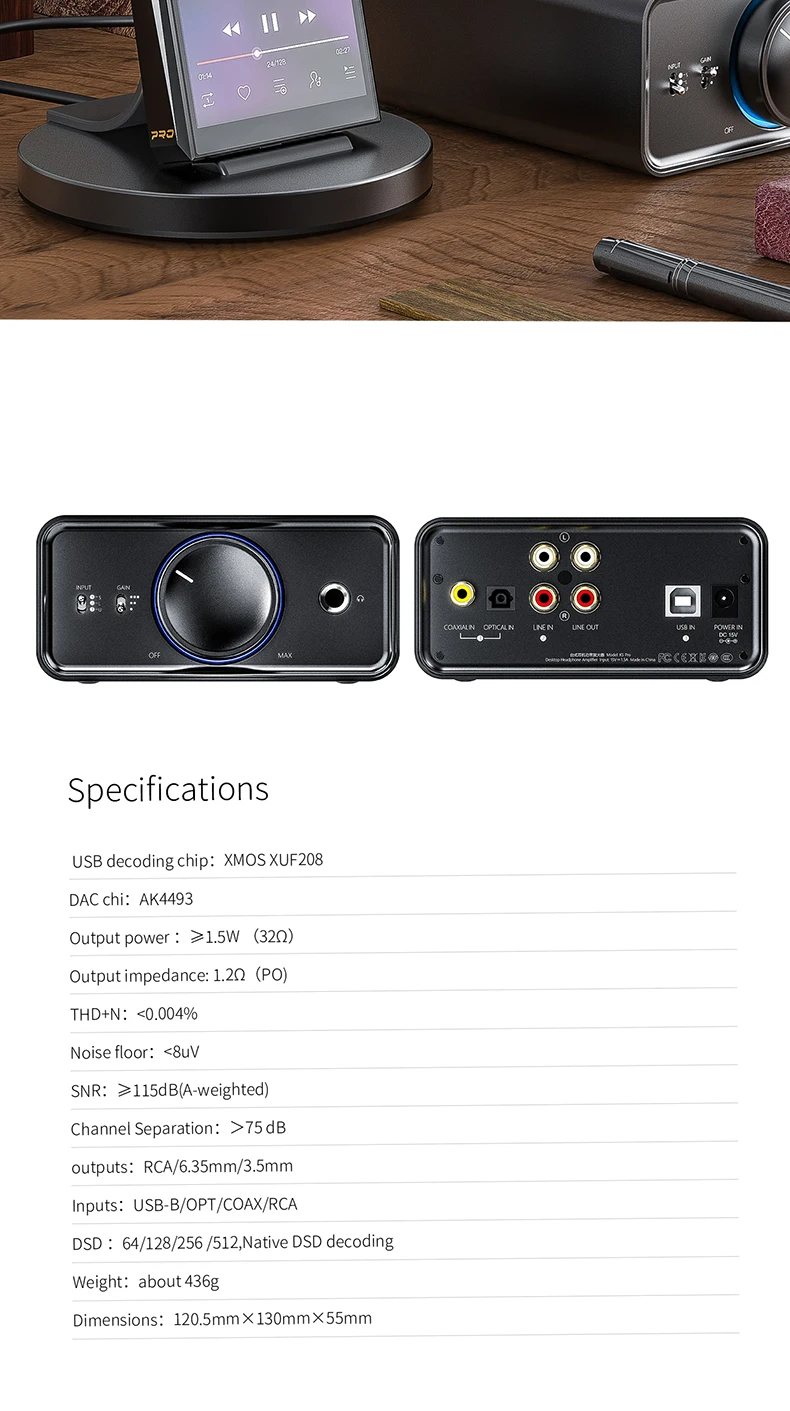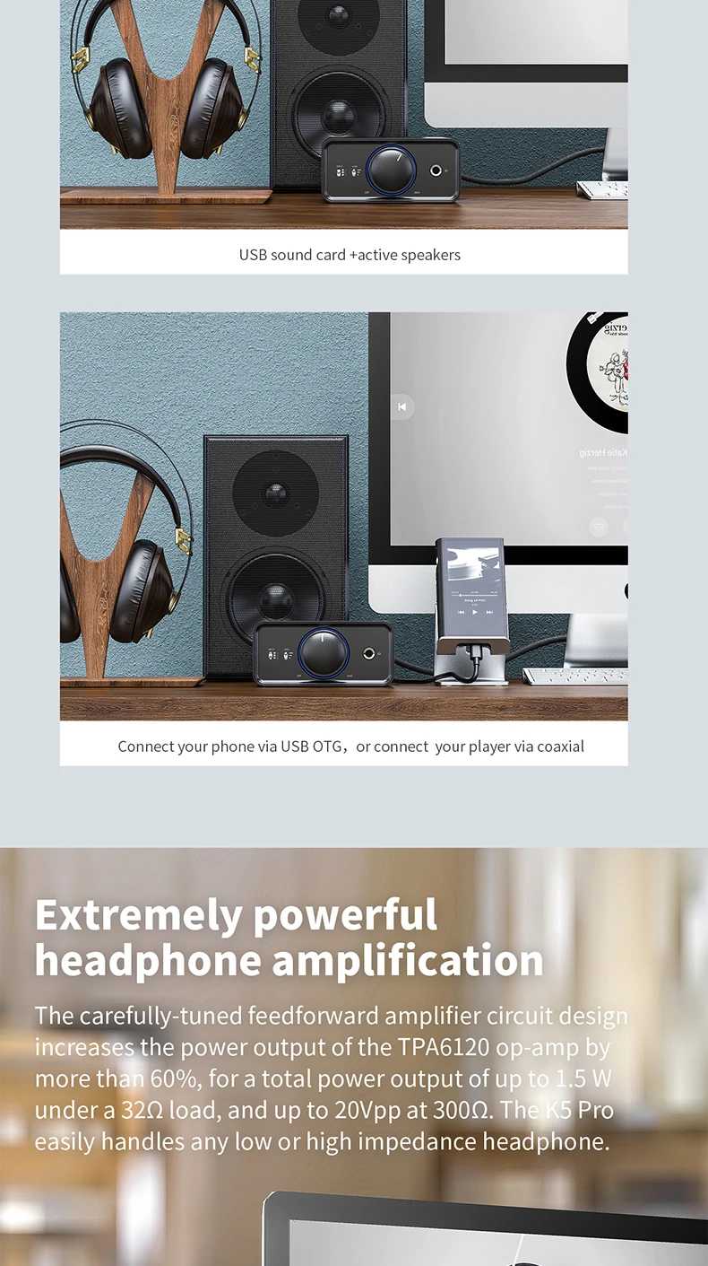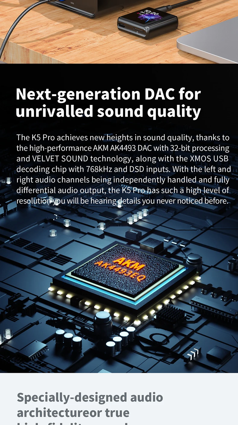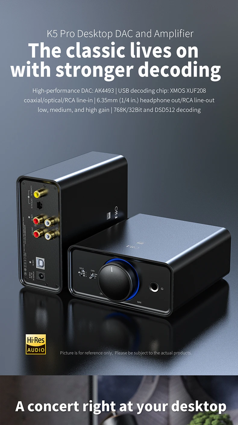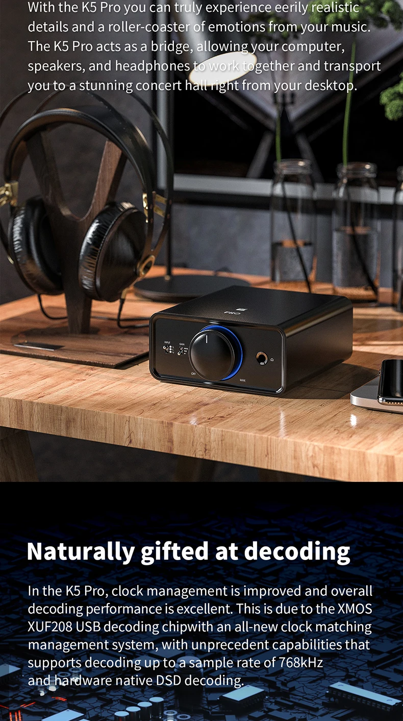 ЦАП и усилитель FiiO K5 Pro AK4493EQ, 768K32 бит, декодирование DSD, десктоп, для дома и компьютера