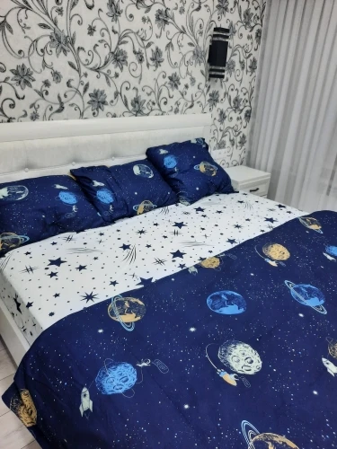 Отличное постельное. Беру не первый раз. Качество отменное, не линяет, хорошо , упаковано. Доставка 3 дня. Есть небольшие косяки по ткани краска немного размазана, но не критично. В целом довольна! Брала за 14$ в подарок блокнотик)