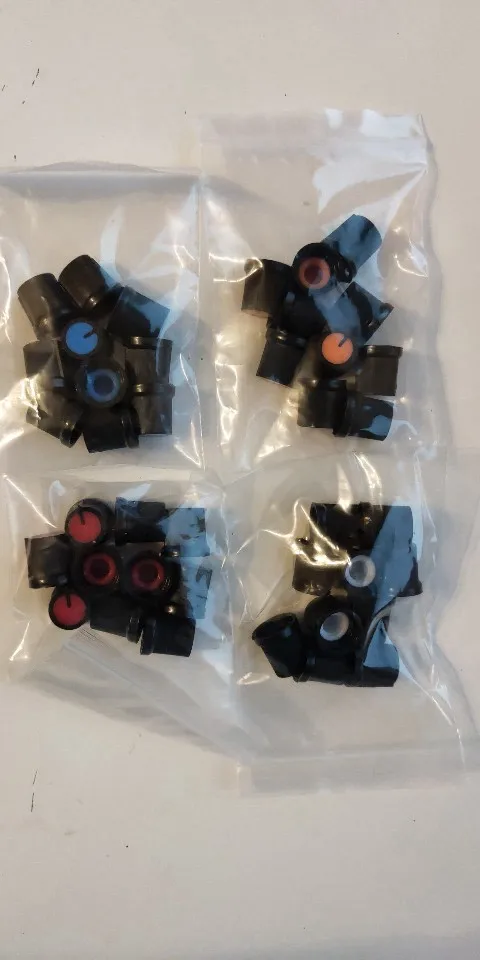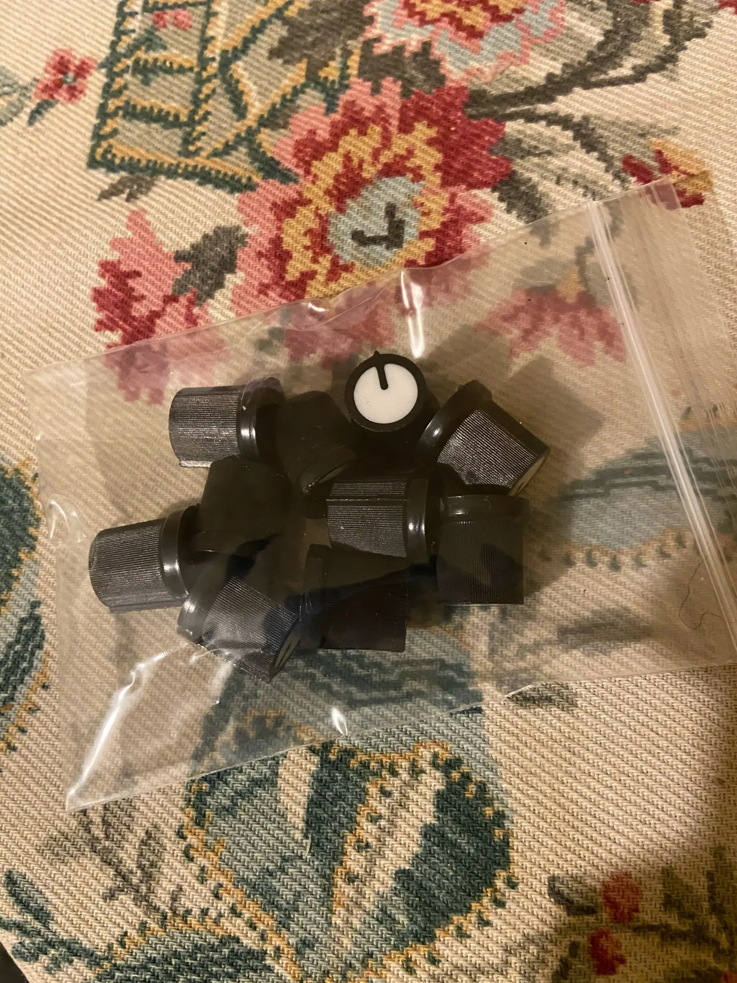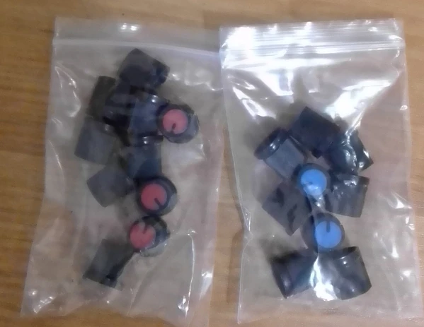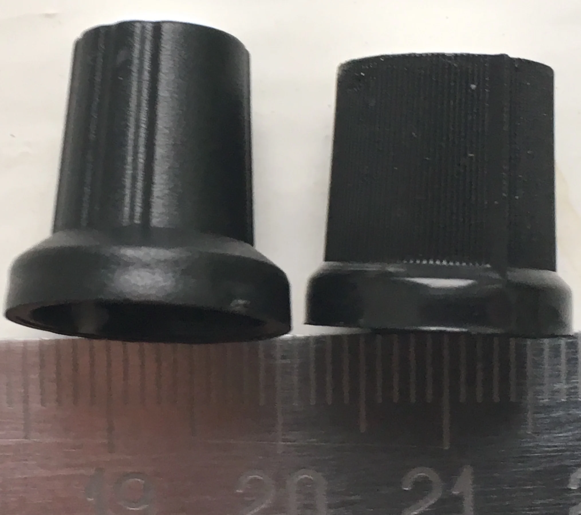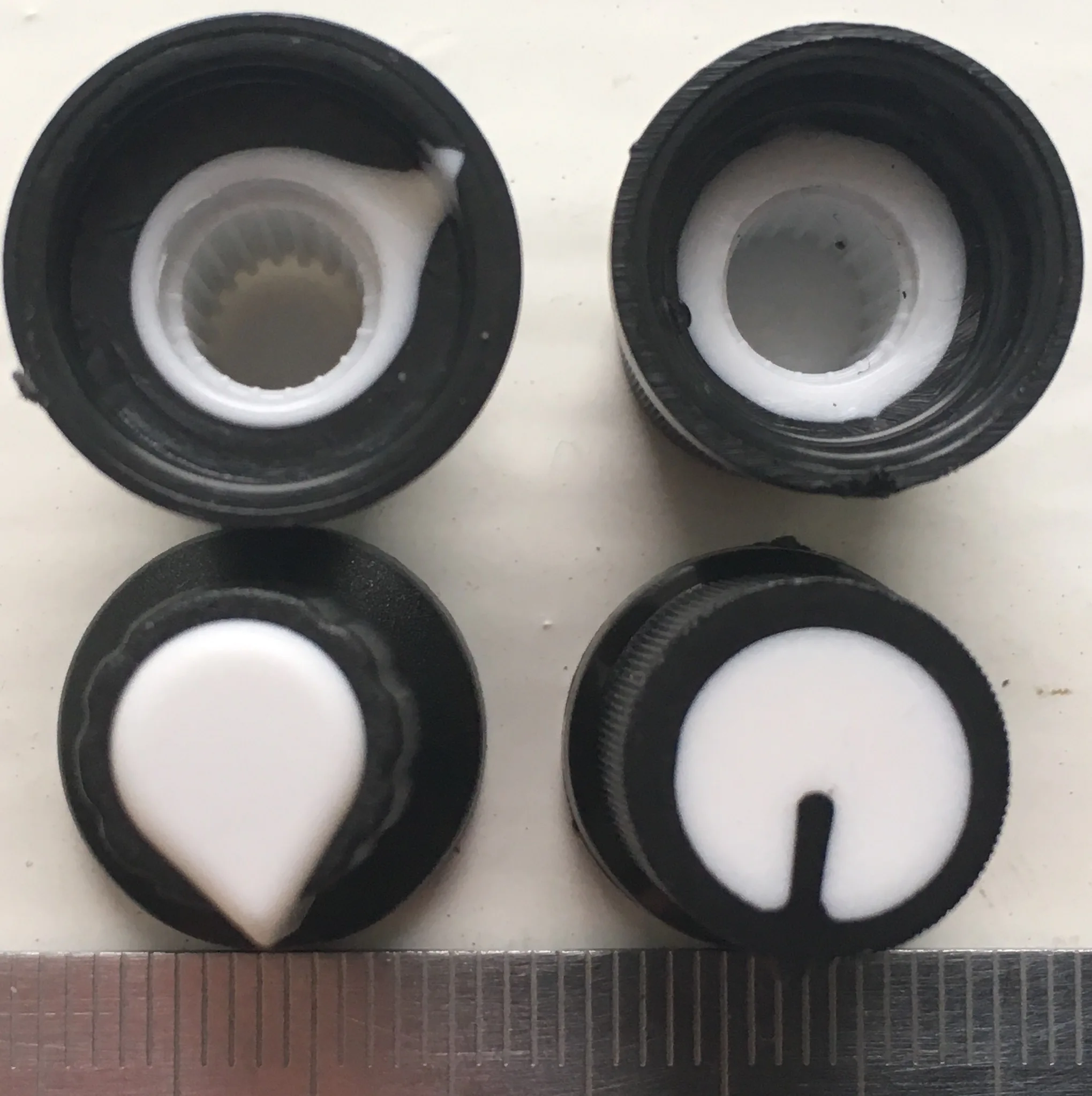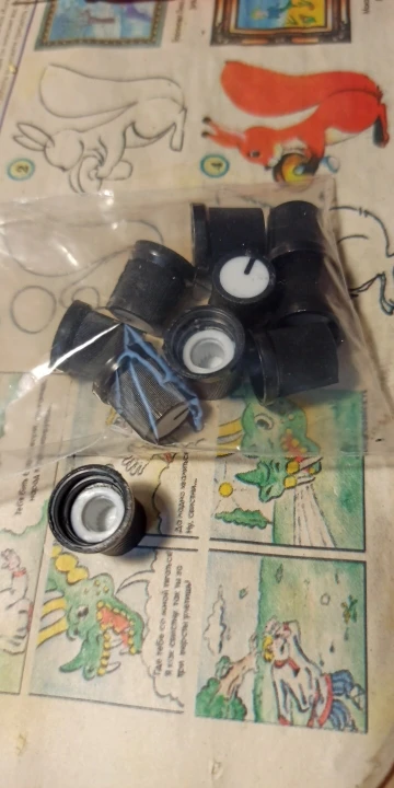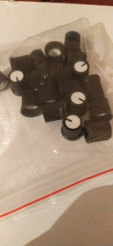 Пришло 10 ручек, точно как в аптеке. На вал переменного резистора садятся как влитые. Качество очень хорошее. Смотрятся симпатично.