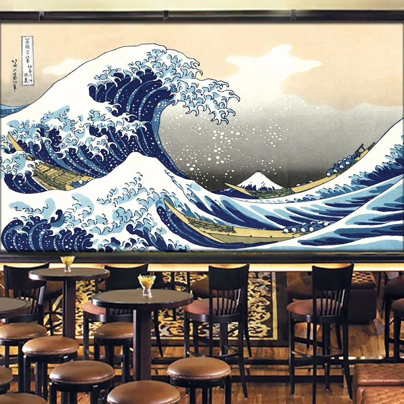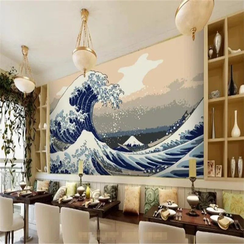Японские укиё-э большие волны HD фото обои s и ветер фон обои 3D для японской кухни Суши Ресторан Декор