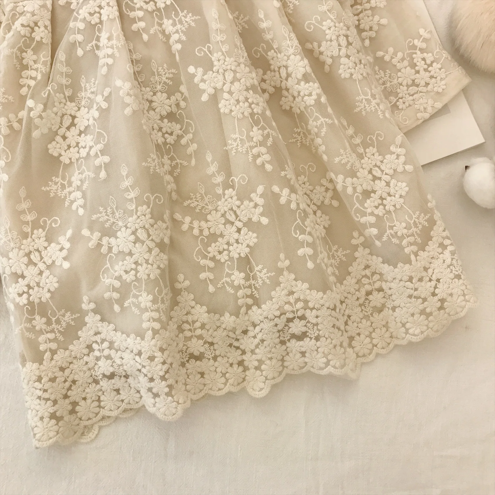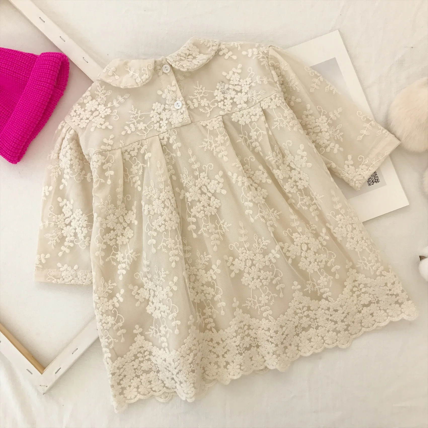 Кружевное платье для девочек, осень 2019, новое корейское платье принцессы с длинными рукавами и вышивкой, зимнее платье для девочек