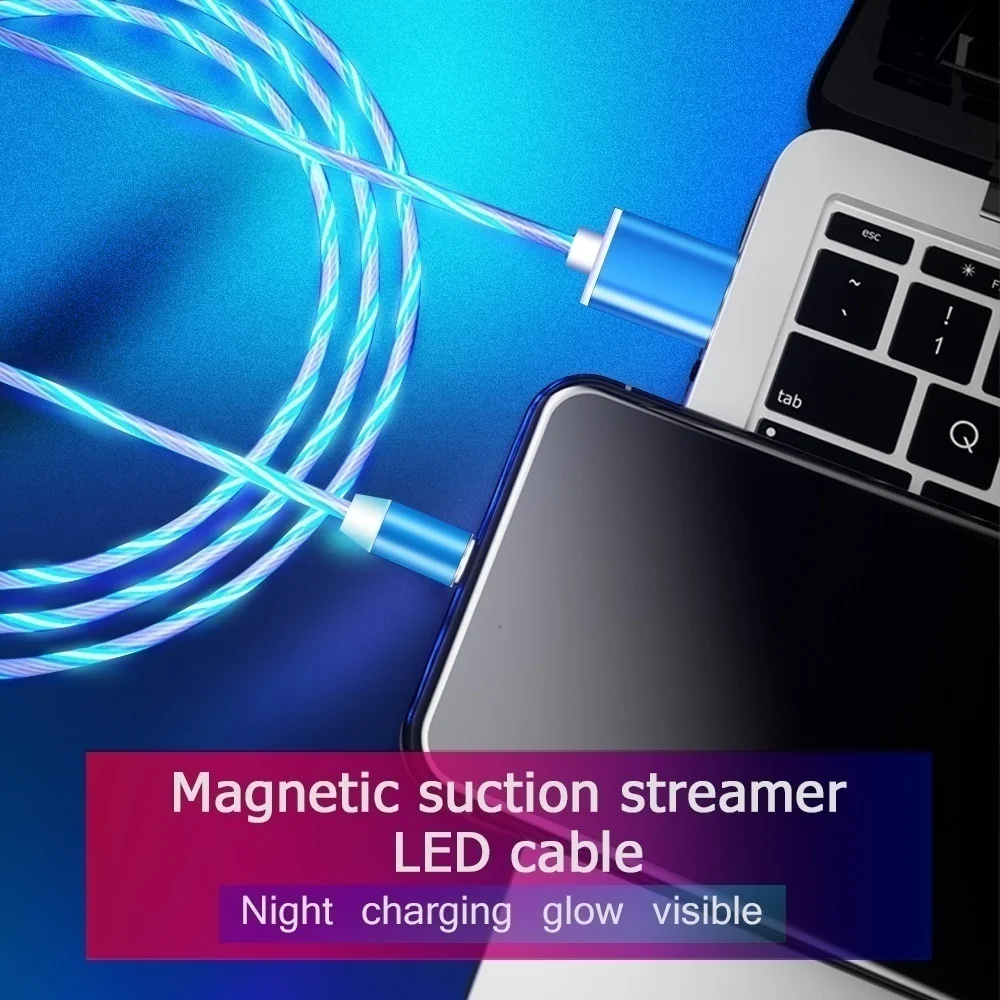 Светодиодный светящийся Магнитный usb-кабель для IPhone Xs Max Магнит Micro USB Type C кабель для Samsung Galaxy S9 S8 быстрое зарядное устройство