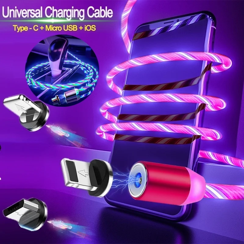 Магнитный зарядный кабель 1 м, USB Type C, потоковый светящийся про...