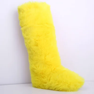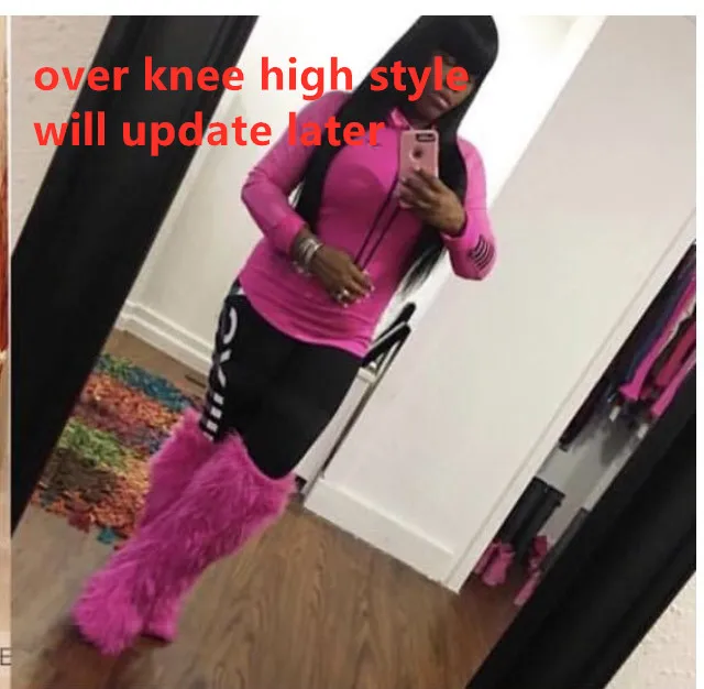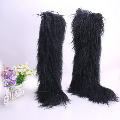 Зимние плюшевые сапоги выше колена, женские пушистые сапоги на плат...