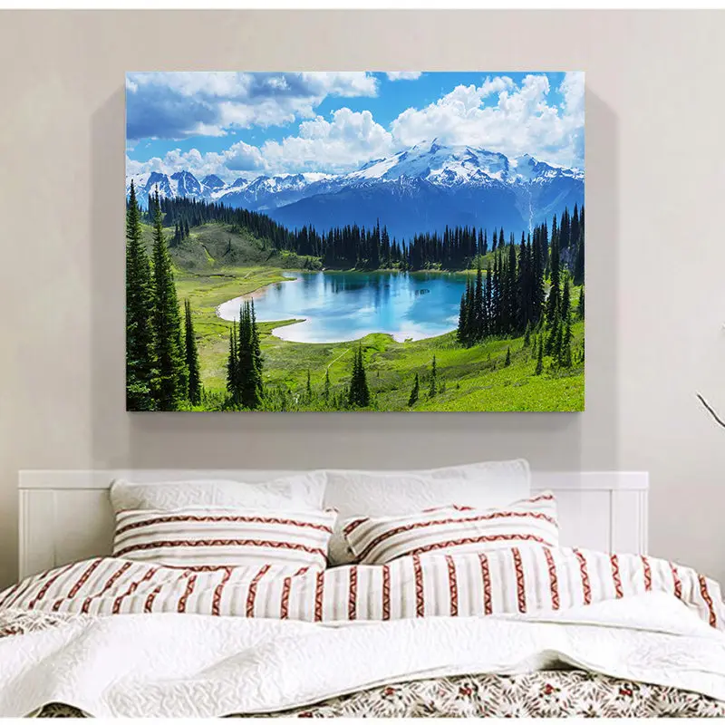 Природный пейзаж, голубое небо, озеро, горы, принты, плакаты, настенная живопись, лесное дерево, холст, Художественная печать, гостиная, спальня, домашний декор
