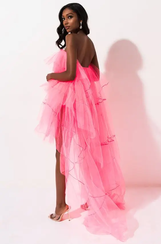 Ярко-розовое многослойное Тюлевое платье макси без бретелек с высоким и низким поясом платье для беременных драматическое вечернее платье Дешевые халаты