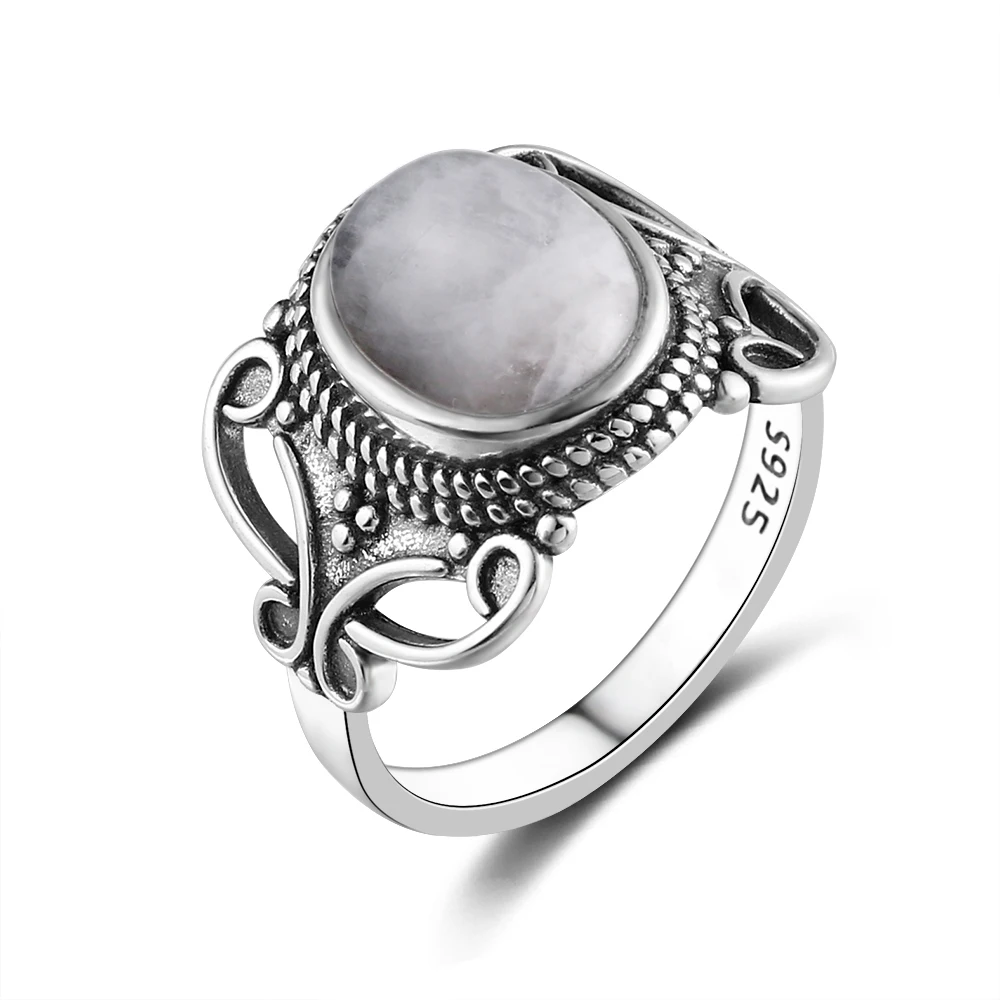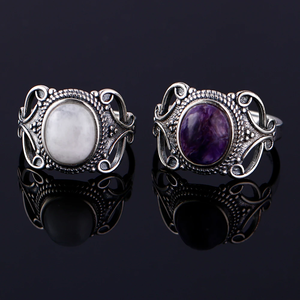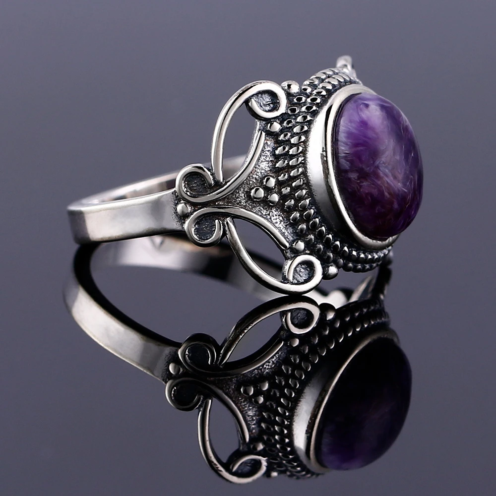 Кольцо из серебра 925 пробы с овальным лунным камнем 8*10 мм и натуральным фиолетовым драконом