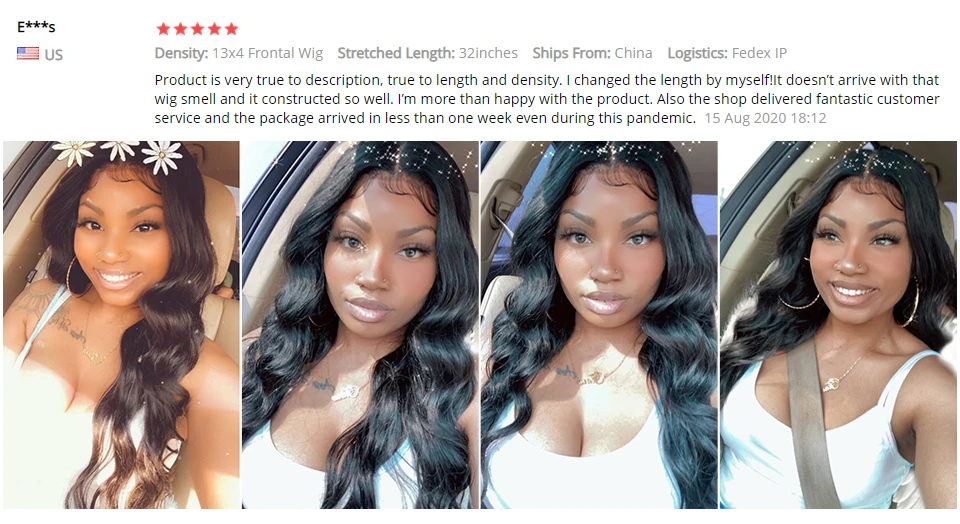 Этот парик точно соответствует описанию! Я получил 13х4, плотность 150 и 32-дюймовый парик. Волосы точно соответствуют длине и плотности. Он также был очень мягким и не пришел с сильным запахом, как некоторые парики от других компаний. Парик пришел очень быстро и эффективно. Ресницы, которые он носил, также были красивыми, в отличие от других случаев, когда я получил ресницы от других компаний. Кружево выглядит так, что его легко расплавить. Большое спасибо!