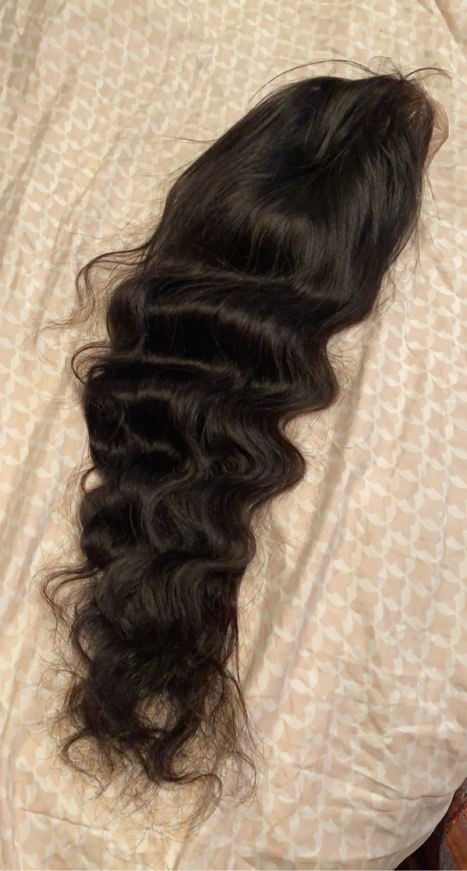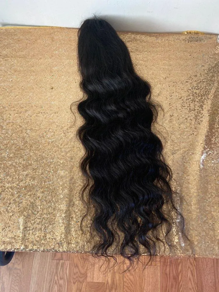 The seller had great communication throughout the shipping process(got to me fairly quickly) the hair is really soft and I comb through it and saw little to no shedding. I asked for 180 density and I got 38 inches(should’ve got 40 because the hair is really nice). There wasn’t a smell also note that I’m 5’10 and it stops a little past my bottom. Will buy again and will review when I get it installed.