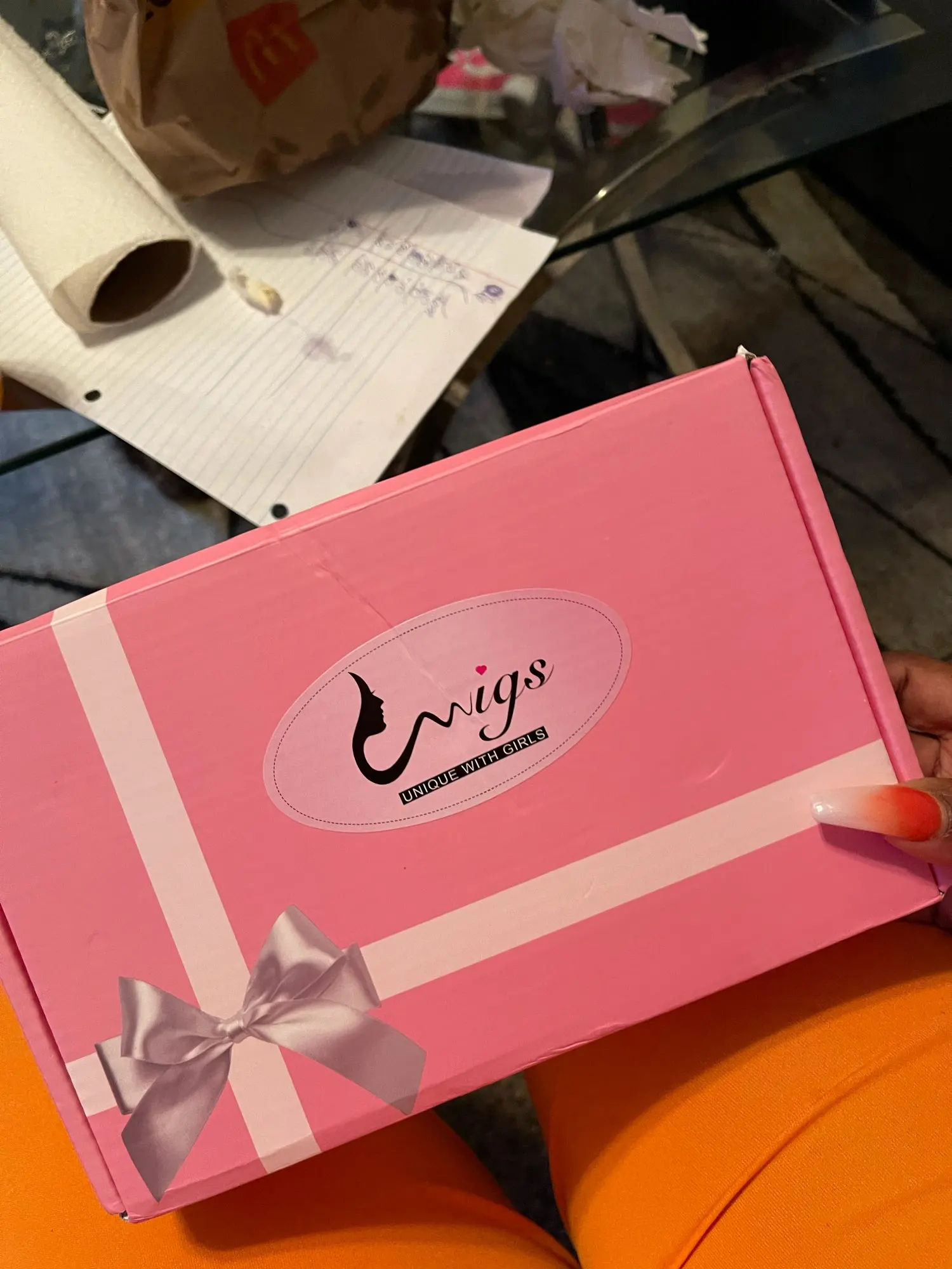 Пришел очень быстро! Парик Полный и длинный, очень мягкий... Я впечатлен.