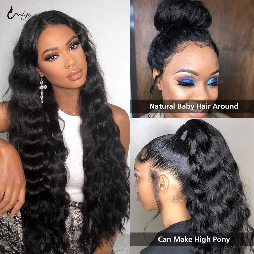 Парик из натуральных волос Uwigs 180, плотность 40 дюймов, HD, прозрачный, с сетчатой фронтальной линией al, объемная волна, парик из натуральных волос 13x4 Для Женщин