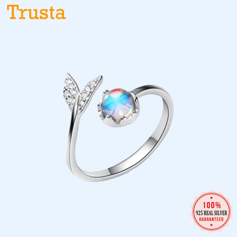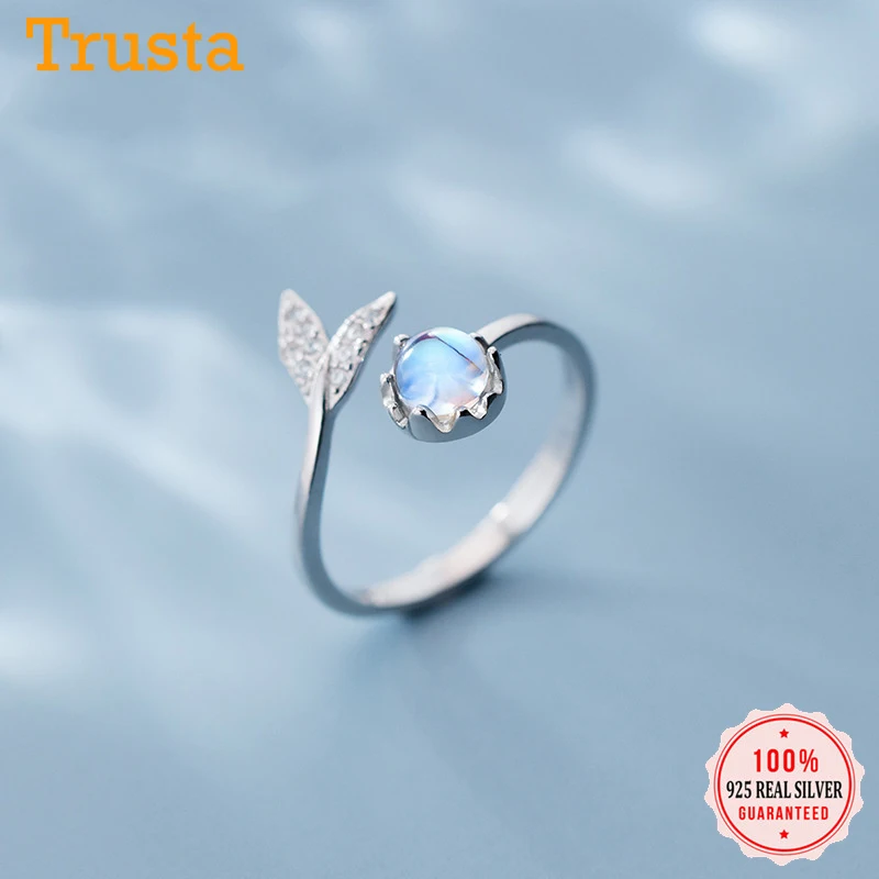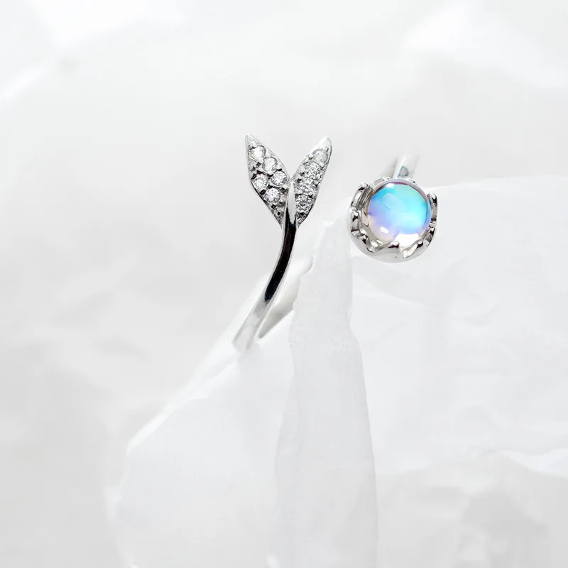 QWC посеребренные милые Русалочки хвост лунный камень Регулируемые ...