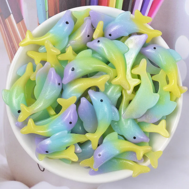 102030 шт. Радужный Дельфин плоская задняя часть, плоское украшение из смолы, аксессуары для поделок, аксессуары для телефона, Декор, материалы, детские игрушки, фигурки
