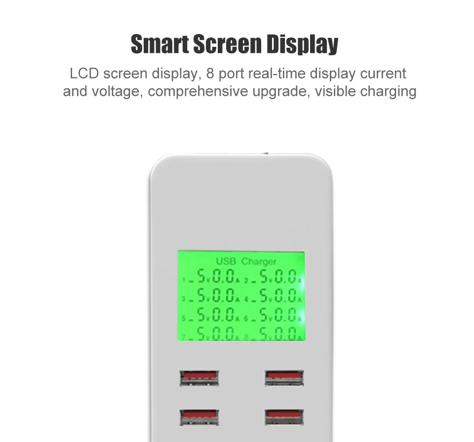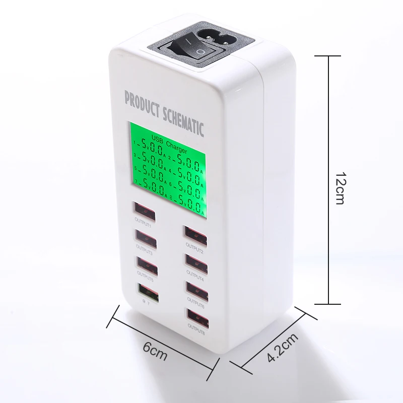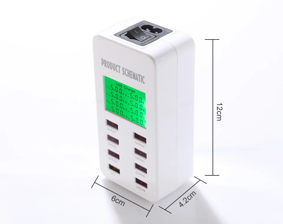 Тип штепсельной вилки: штепсельная вилка стандарта США, она подходит для канадских, индийских, японских, мексиканских, тайских, американских, вьетнамских и т. д. Название продукта: 8-с одним портом, настольная с дисплеем смарт-устройство для быстрой зарядки Модель продукта: A8B ЖК-дисплей: дисплей напряжения и тока Входное напряжение: 100-240 В переменного тока Входная частота: 50-60 Гц Входное напряжение, выдерживающее напряжение: I/P-O P, I/P-FG: 1,5 кв переменного тока, O/P-FG: 0,5 кв переменного тока, 1 мин Выходное напряжение: 5 В Ток на выходе: 8А Выходная мощность: 40 Вт Выходная рябь: 100 ~ 150% Выход диапазон регулировки напряжения: ± 10% Защита от перегрузки на выходе: 90%-105% Рабочая температура: -20 °-50 ° Длина кабеля: 1500 мм Размеры: 125*64*42 см Эффективность работы: 70% Способ отведения тепла: безопасный алюминиевый лист для отведения тепла Автоматическая идентификация: Автоматическая идентификация тока на основе устройства Максимальный выход USB 3,5a с одним портом Материал: АБС-пластик Цвет: белый Посылка в комплект входит: 1 * умное зарядное устройство USB 1 * шнур питания Посылка, указанная выше, не входит в комплект. Примечание: светильник съемки и различные дисплеи могут привести к тому, что цвет товара на фотографии может немного отличаться от реального вещь. Допускается погрешность в измерениях +/- 1-3 см.
