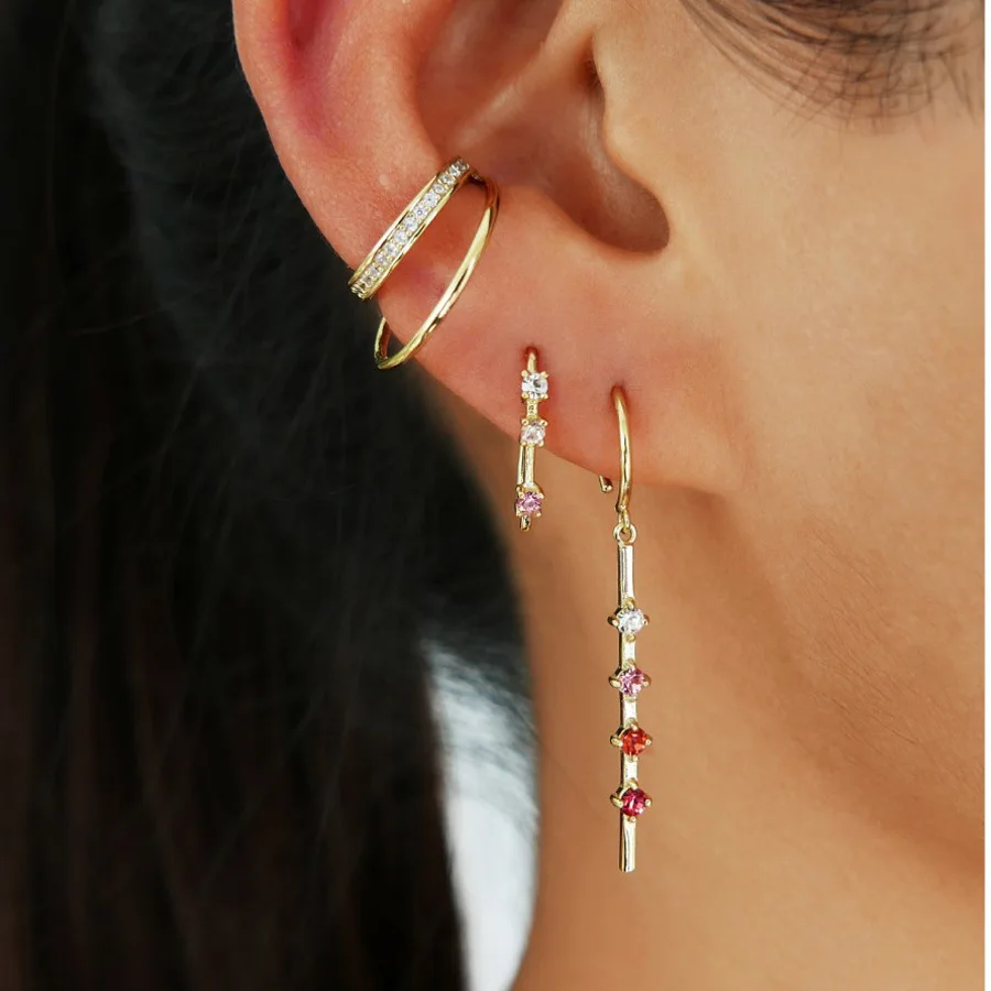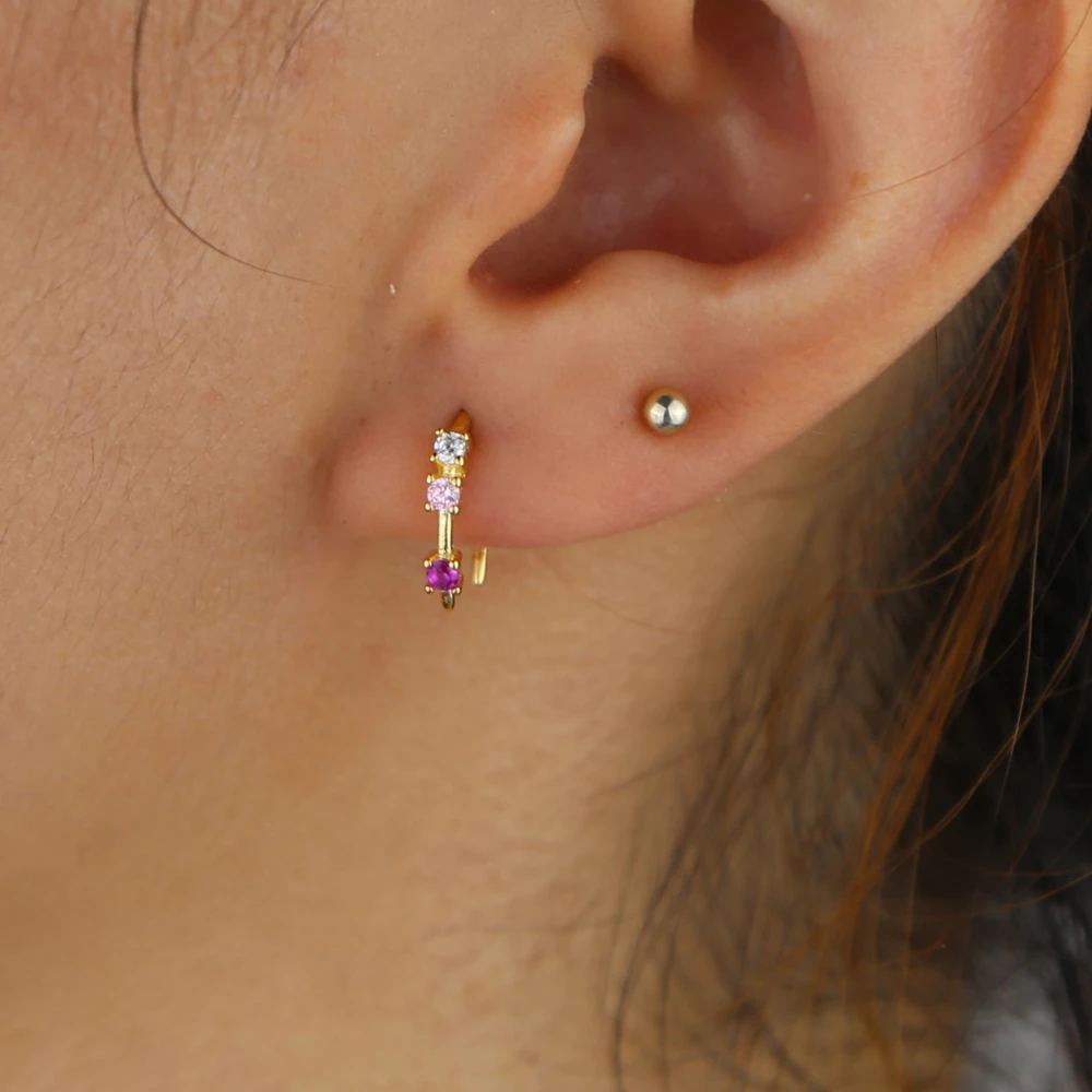2021 золотое покрытие Рог Форма минималистский красочные CZ серьги-...