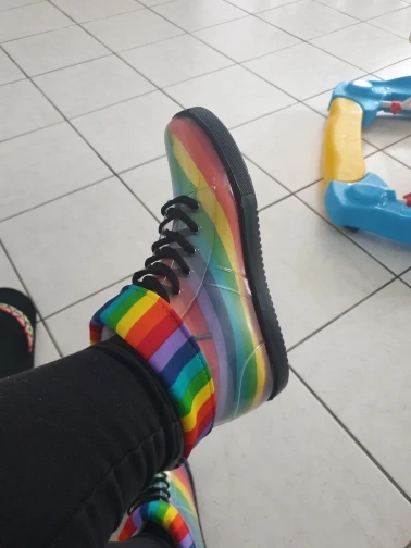 Прекрасный продукт так же, как на фото (желтый теплый), фантастический вид! Соответствует размеру (ЕС) 39. Не тестировано на лужах, но кажется водонепроницаемым. Я очень доволен покупкой!