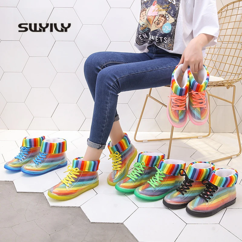 Женские резиновые сапоги SWYIVY, непромокаемые, прозрачные, Нескользящие, 2019