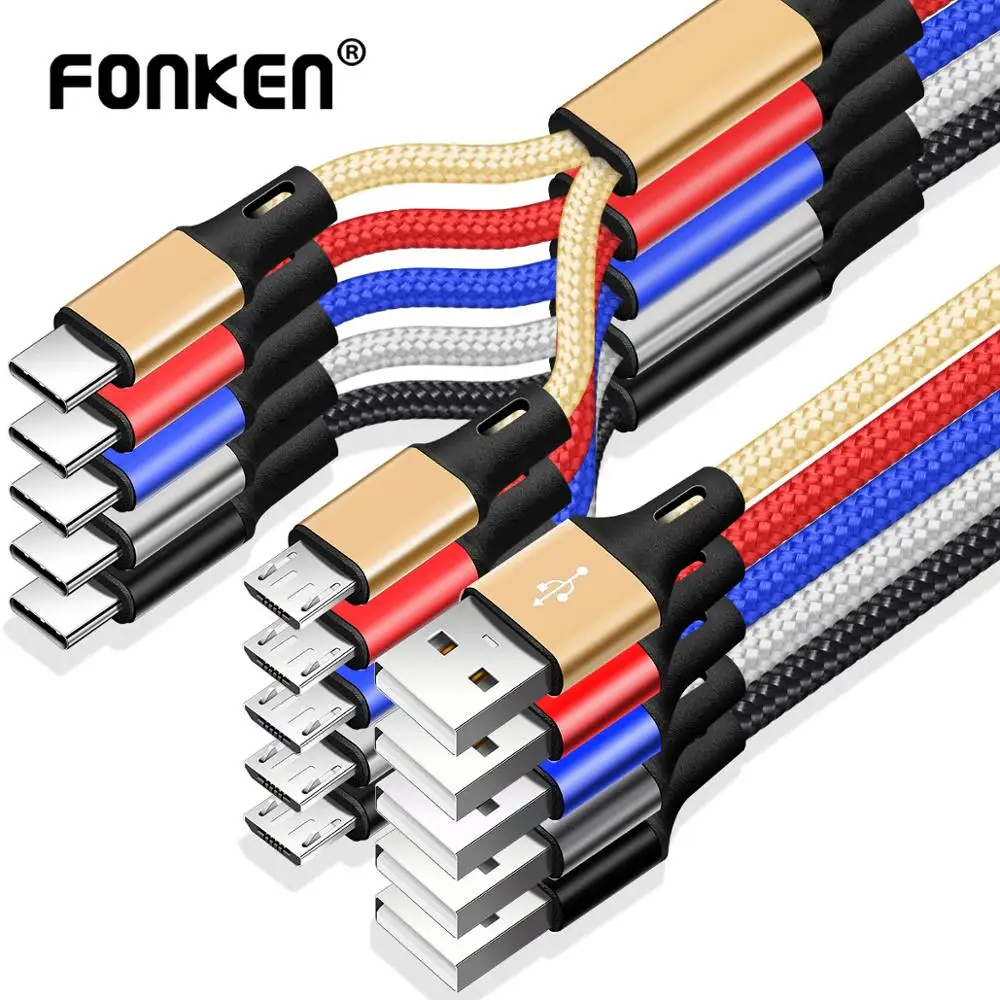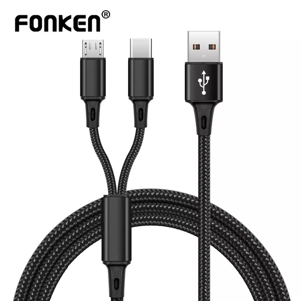 Кабель FONKEN 2 в 1 Micro USB Type-C, для Samsung, Xiaomi, для мобильных телефонов Android, для Huawei