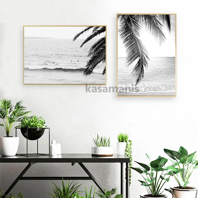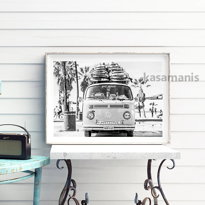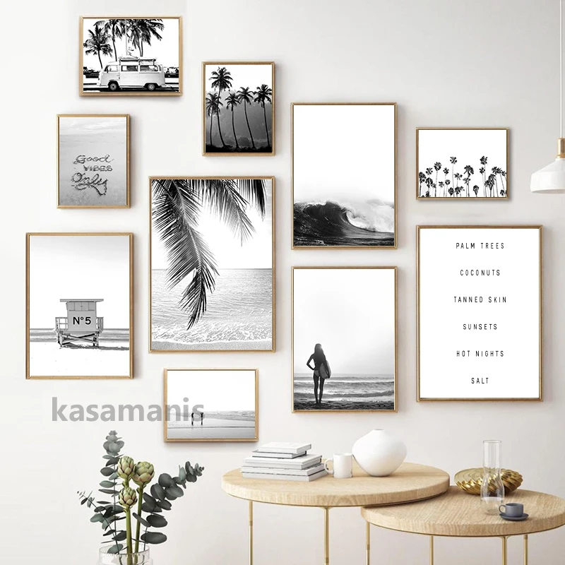 Плакаты и принты черно-белого Пейзажа для морской серфинга, доска для серфинга, фотографии, Картина на холсте, домашний декор