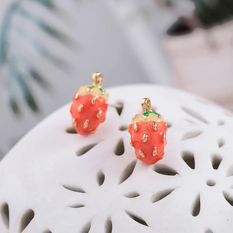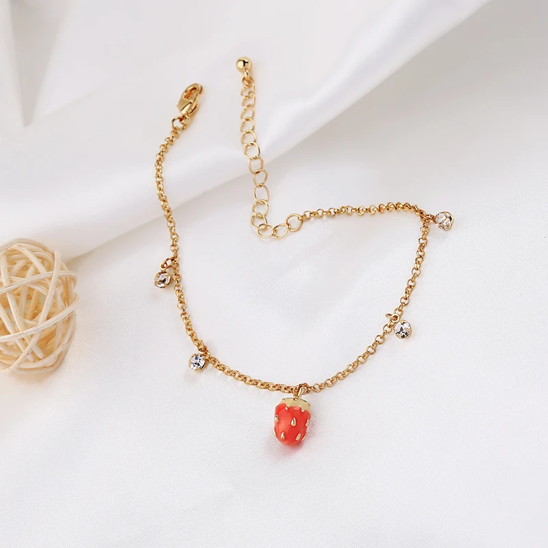 Изысканный красный эмалевый клубничный Хрустальный комплект женских ювелирных изделий balanдостаточно ярких золотистых браслетов аксессуаров