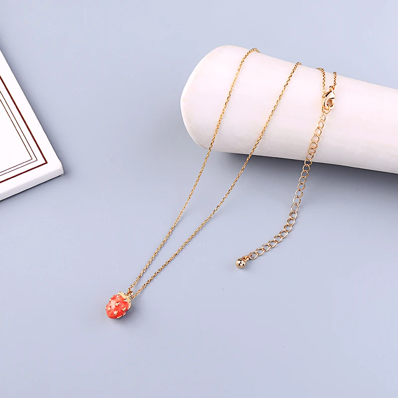 Женское ожерелье и браслет с красной эмалью BALANBIU, браслет и серьги золотого цвета с милыми фруктами, модные ювелирные изделия