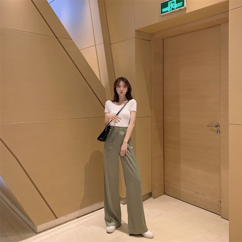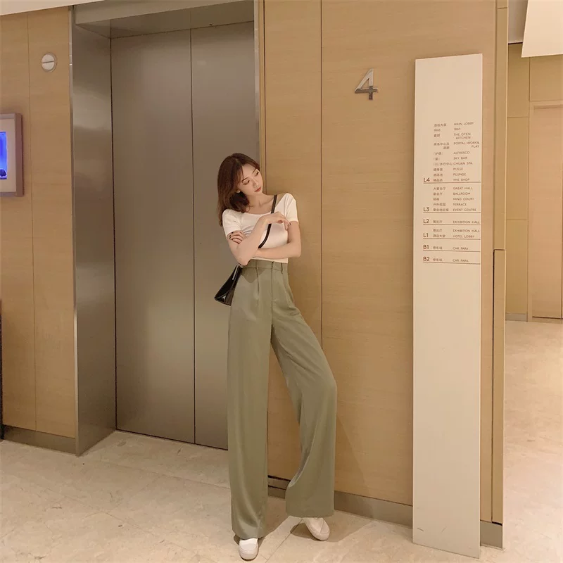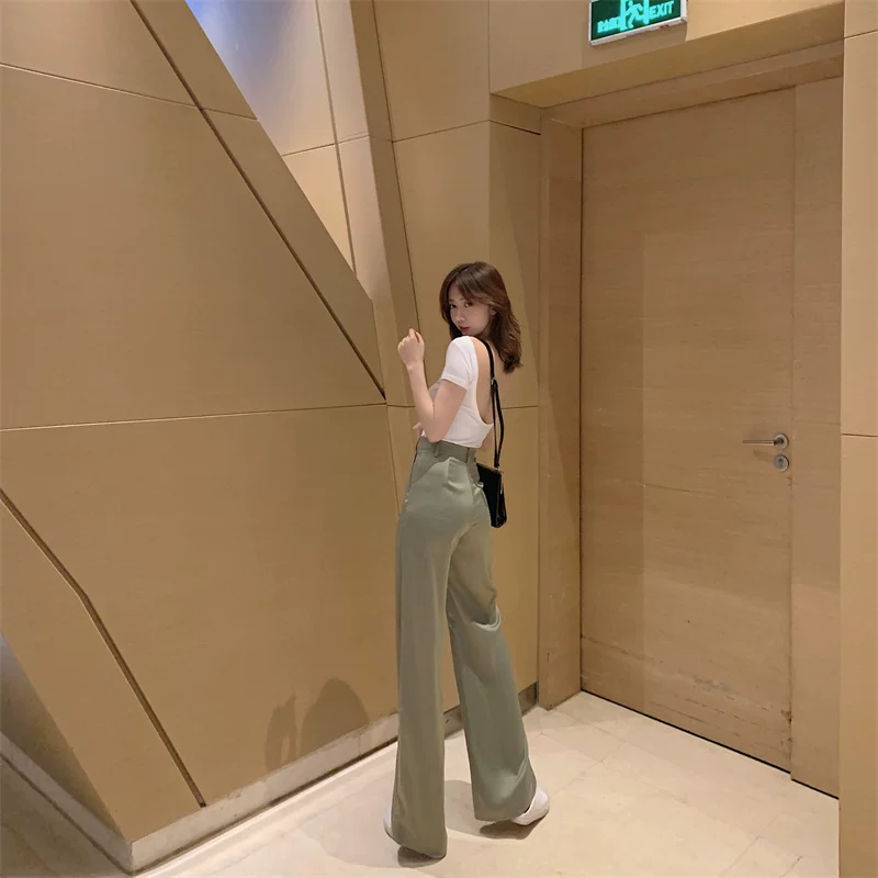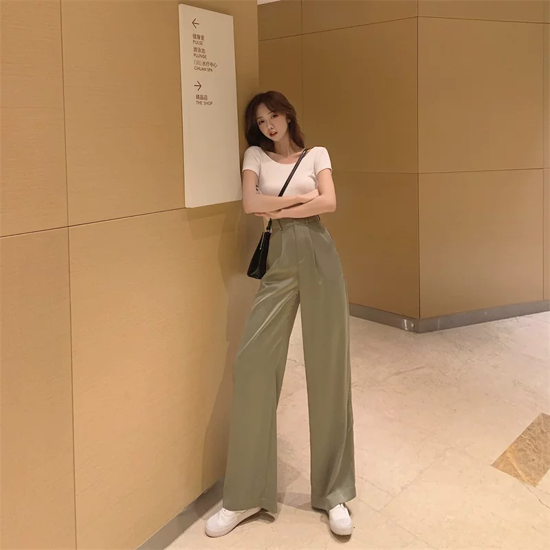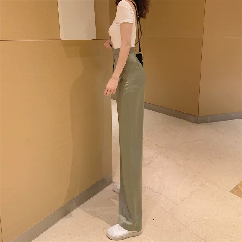 Женские свободные брюки, зеленые однотонные тонкие модные повседневные широкие брюки с высокой талией, модель 2022 на весну и лето, 9680