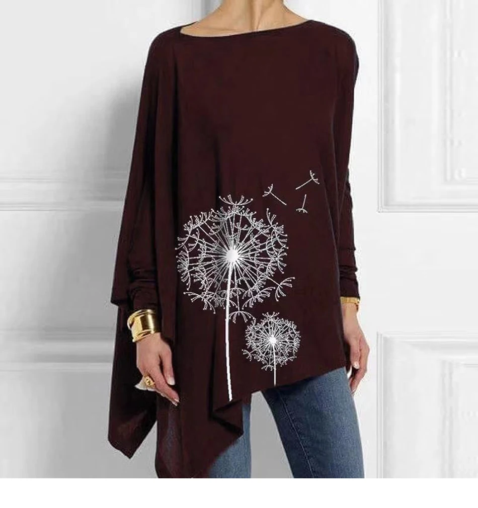 Топ женский хлопковый асимметричный с круглым вырезом и длинным рукавом, осень 2020 г., размера плюс