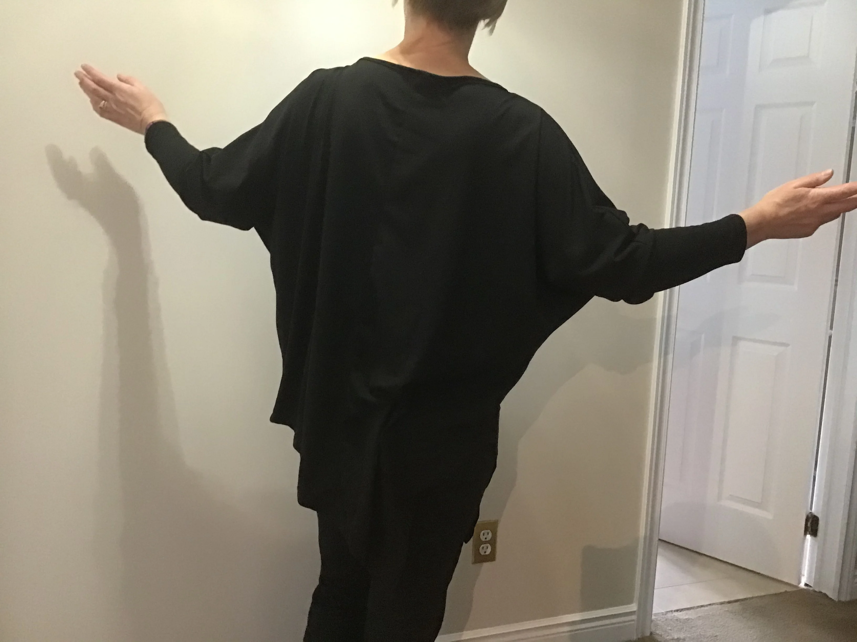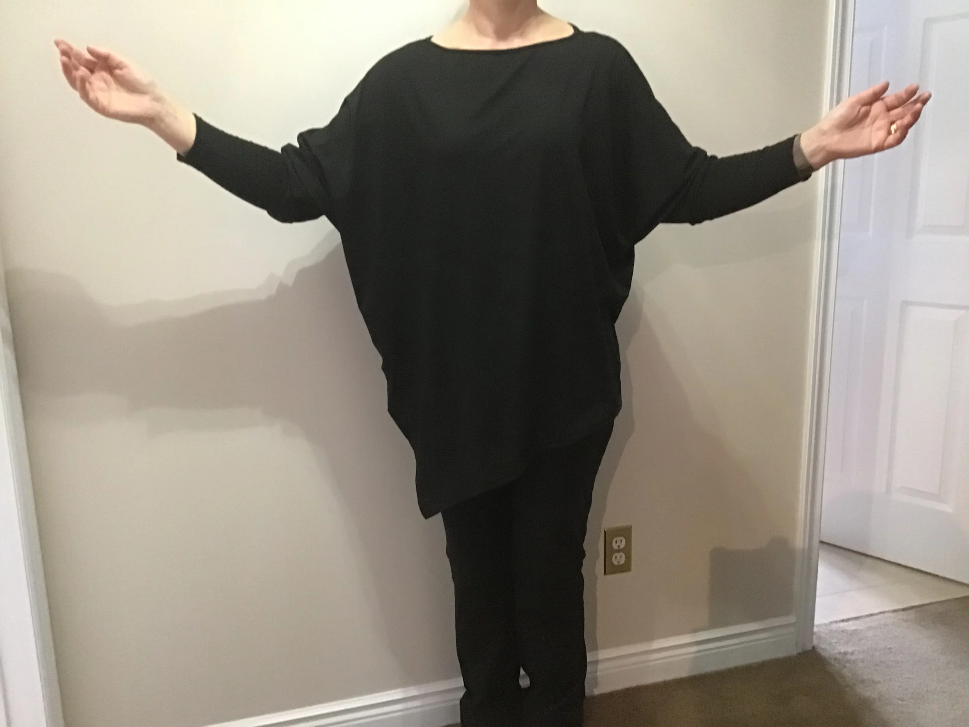 Хороший, но не отличное качество. Я не уверен, буду ли я покупать больше. Есть несколько рассыпчатых нитей. Она не драпируется красиво, потому что сделана из материала футболки среднего веса. Это не лестно. Если бы я увидел его и примерил его в магазине, я бы не купил его. Это было дешево и выглядит дешево. Я Средний размер в США, а средний Топ мне подходит. Я купил его для работы и буду носить его. Вырез достаточно высокий на шее, чтобы он не показывал, когда я наклоняюсь.
