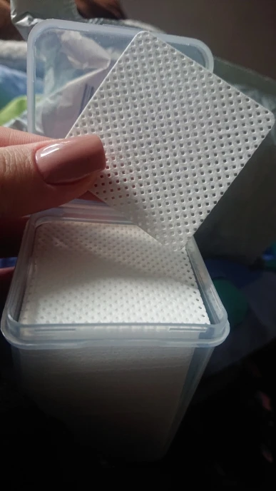 Товар точно такой же, как на фото, но контейнер, который я получил, полностью заполнен до самого верха (тот, который изображен в списке, не полный, мой!). Безусловно, без ворса материал, но текстура не такая, как я ожидал. Почти как пластик, но это не так. Идеально подходит для протирания липкого гелевого покрытия или просто протирания ногтей спиртом. На доставку ушло четыре месяца!